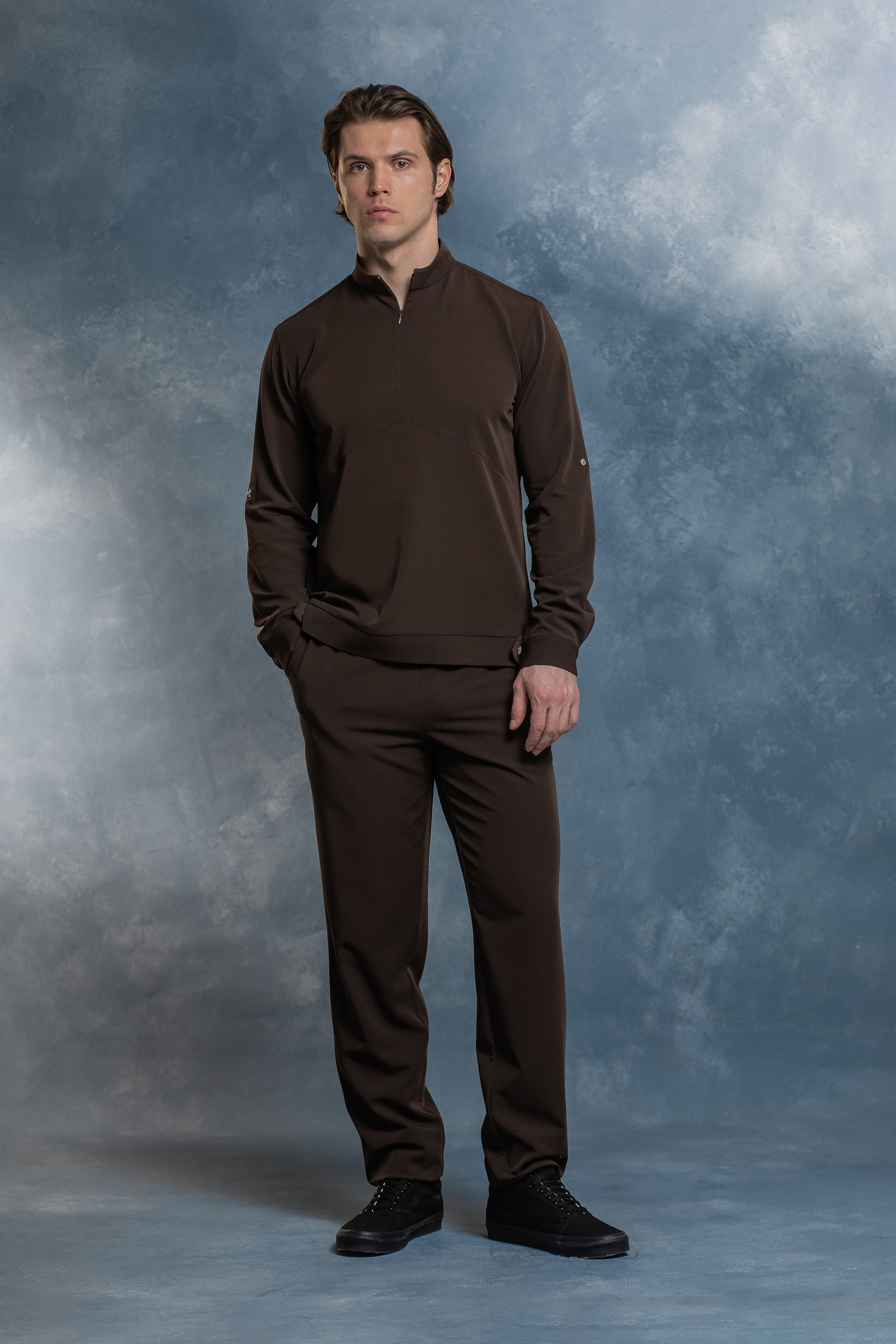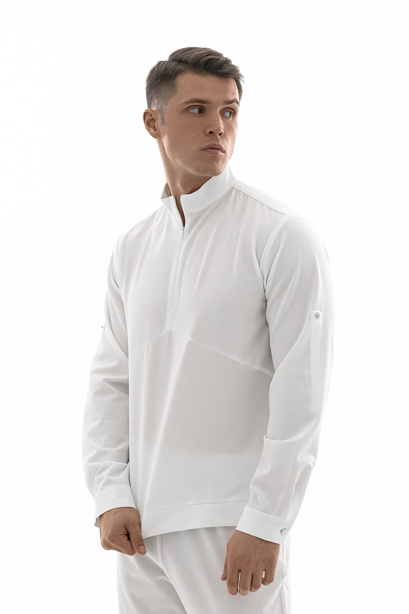 Свободная блуза в стиле оверсайз для максимального комфорта. Удобная горловина с молнией позволяет регулировать посадку, а рукава с кнопками можно закатать. Универсальная модель, которая легко сочетается с брюками Balance и джоггерами. Идеальная основа для расслабленного рабочего образа.