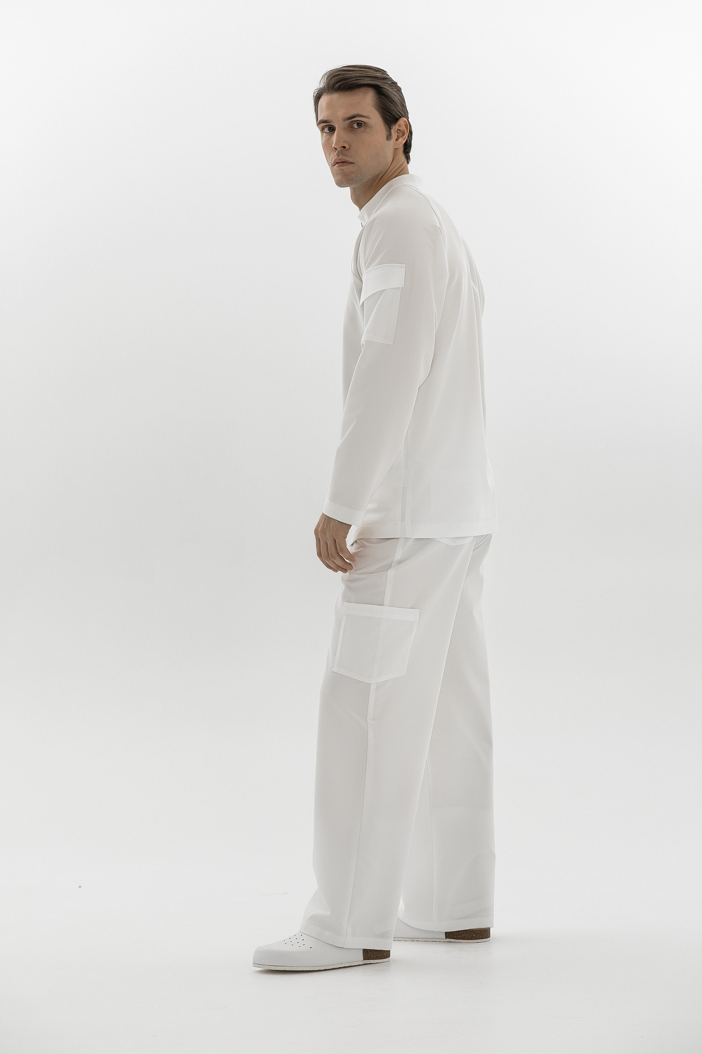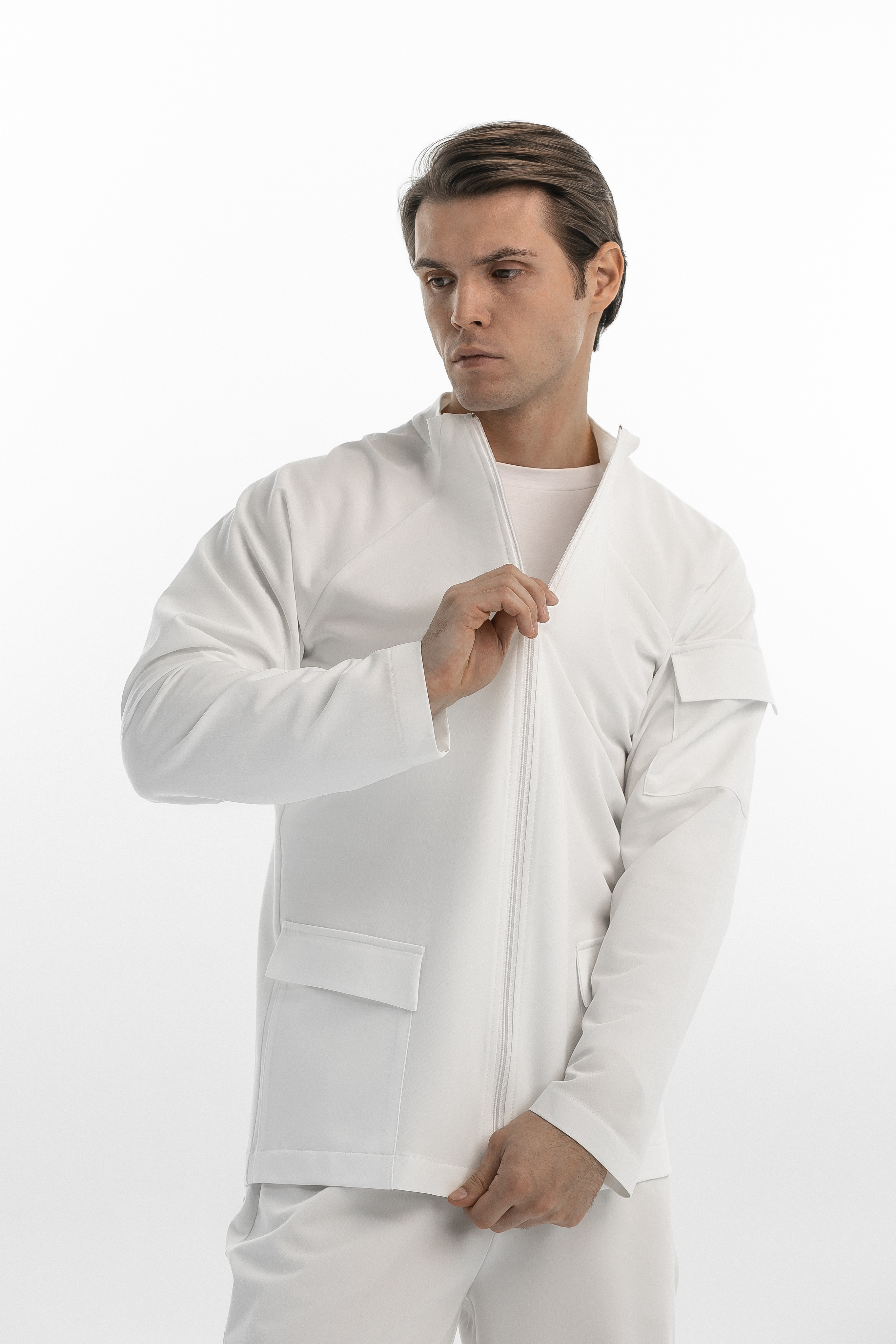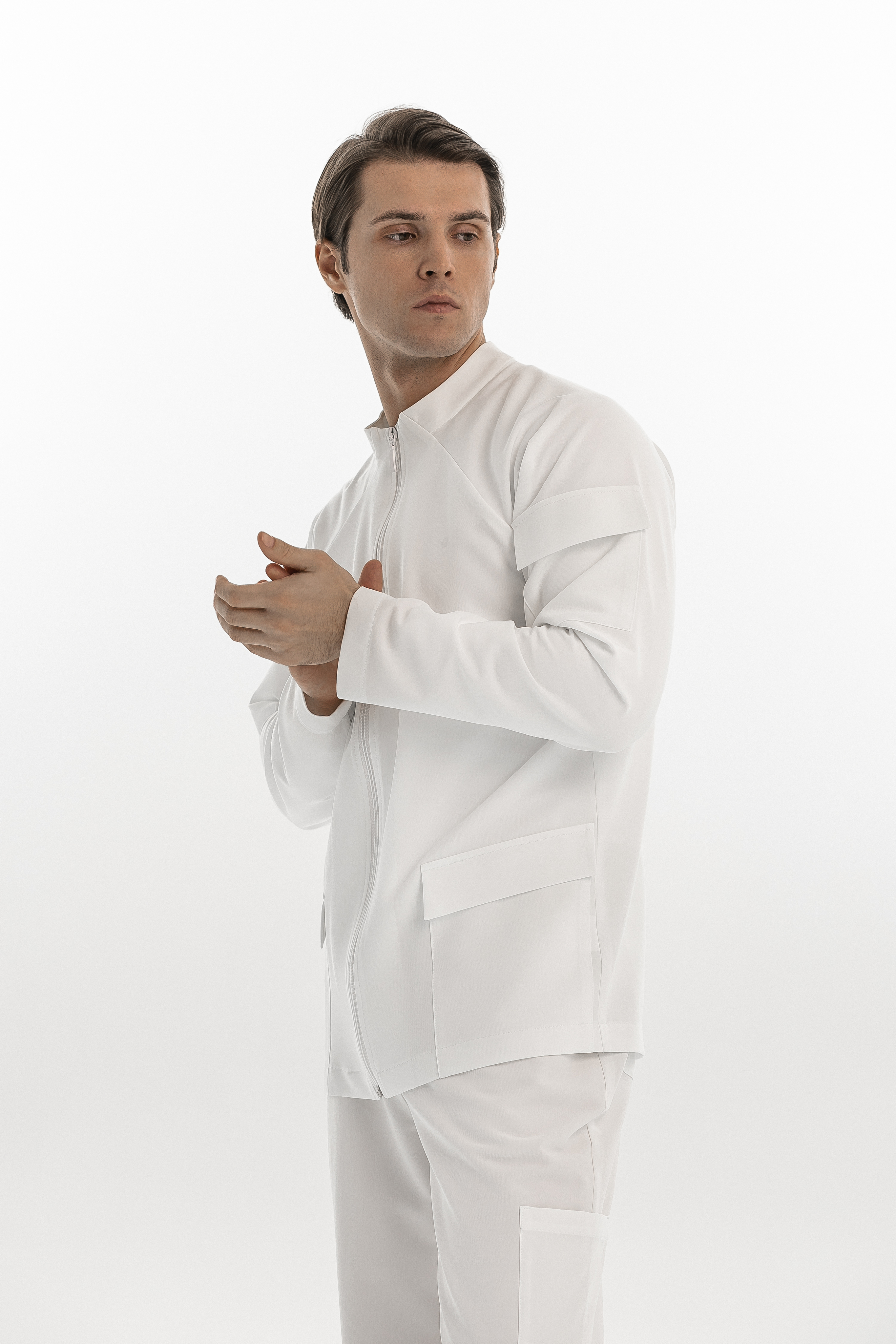 Функциональные накладные карманы спереди и дополнительный карман на рукаве делают модель практичной, а эргономичный крой рукавов обеспечивает свободу движений и аккуратный профессиональный вид.