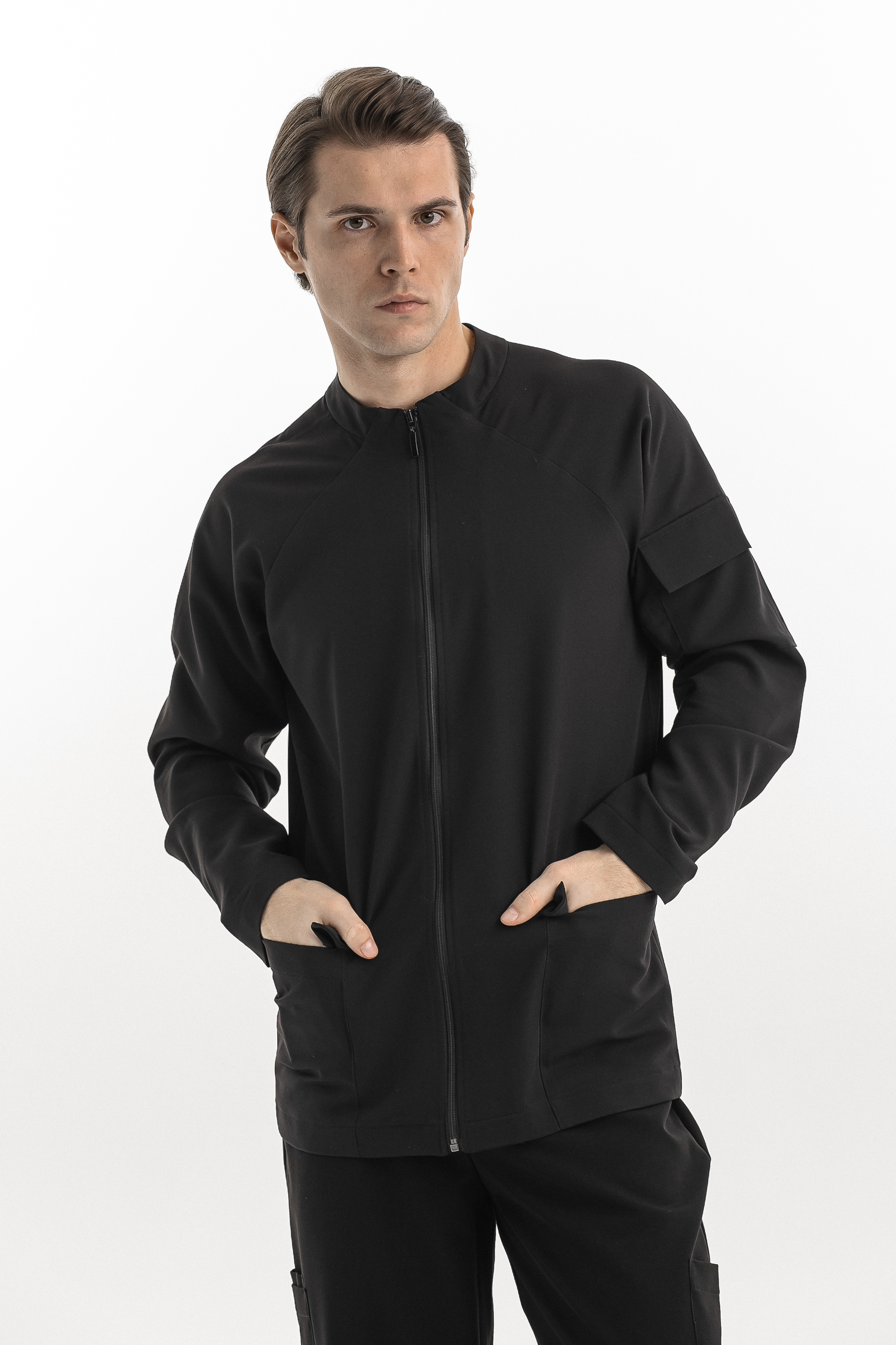 Мужской медицинский свитшот с лаконичным современным дизайном, созданный для комфортной работы в течение всего дня. Прямая посадка не сковывает движения, а воротник-стойка с молнией позволяет регулировать посадку и обеспечивает удобство при надевании.
