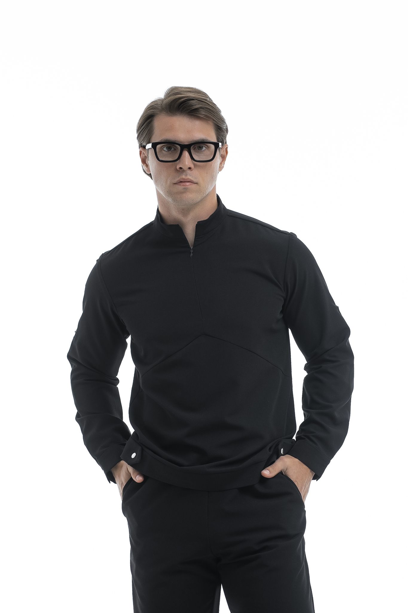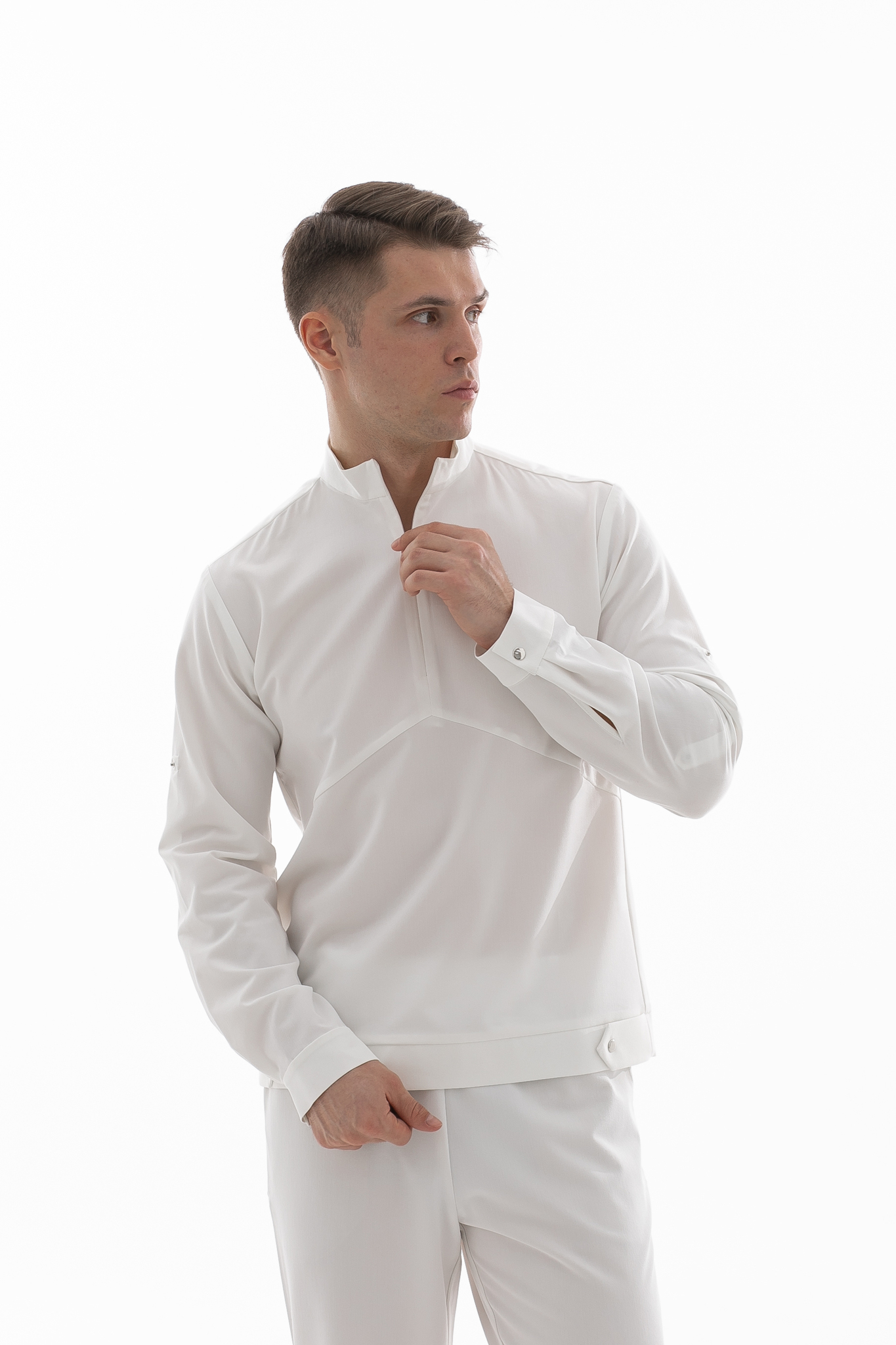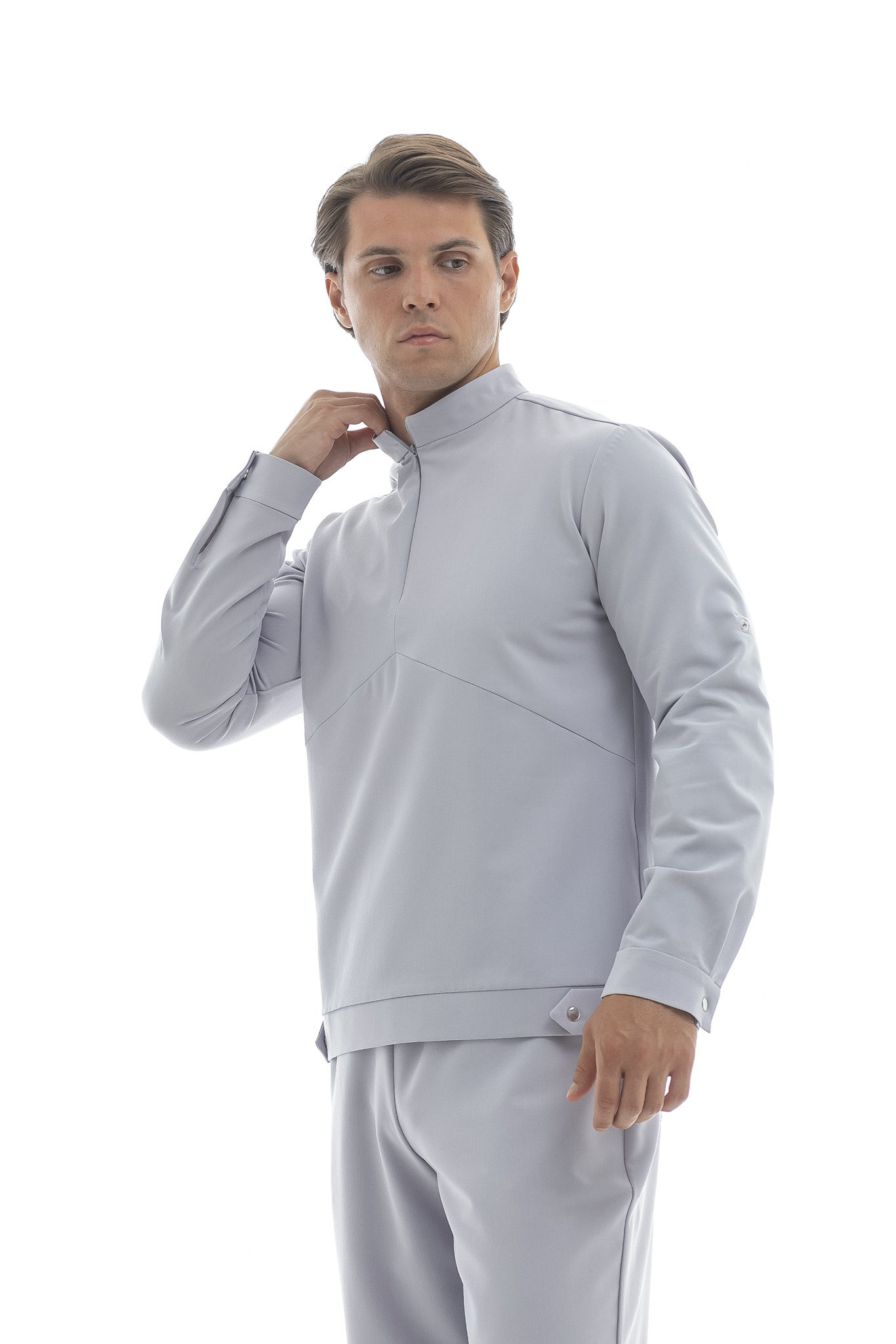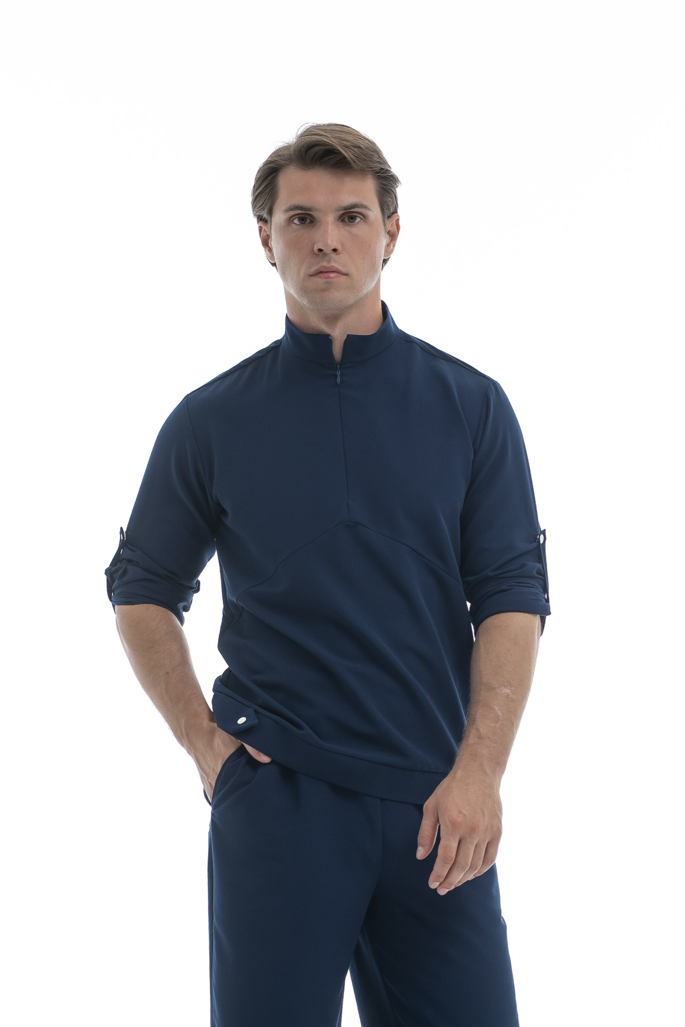Свободная блуза в стиле оверсайз для максимального комфорта. Удобная горловина с молнией позволяет регулировать посадку, а рукава с кнопками можно закатать. Универсальная модель, которая легко сочетается с брюками Balance и джоггерами. Идеальная основа для расслабленного рабочего образа.