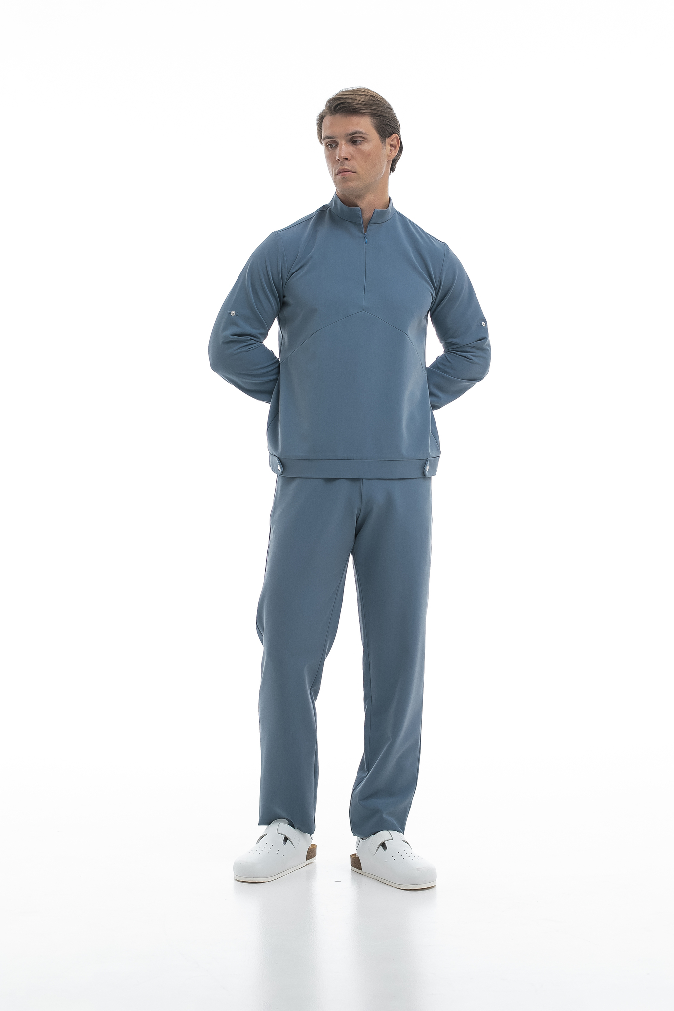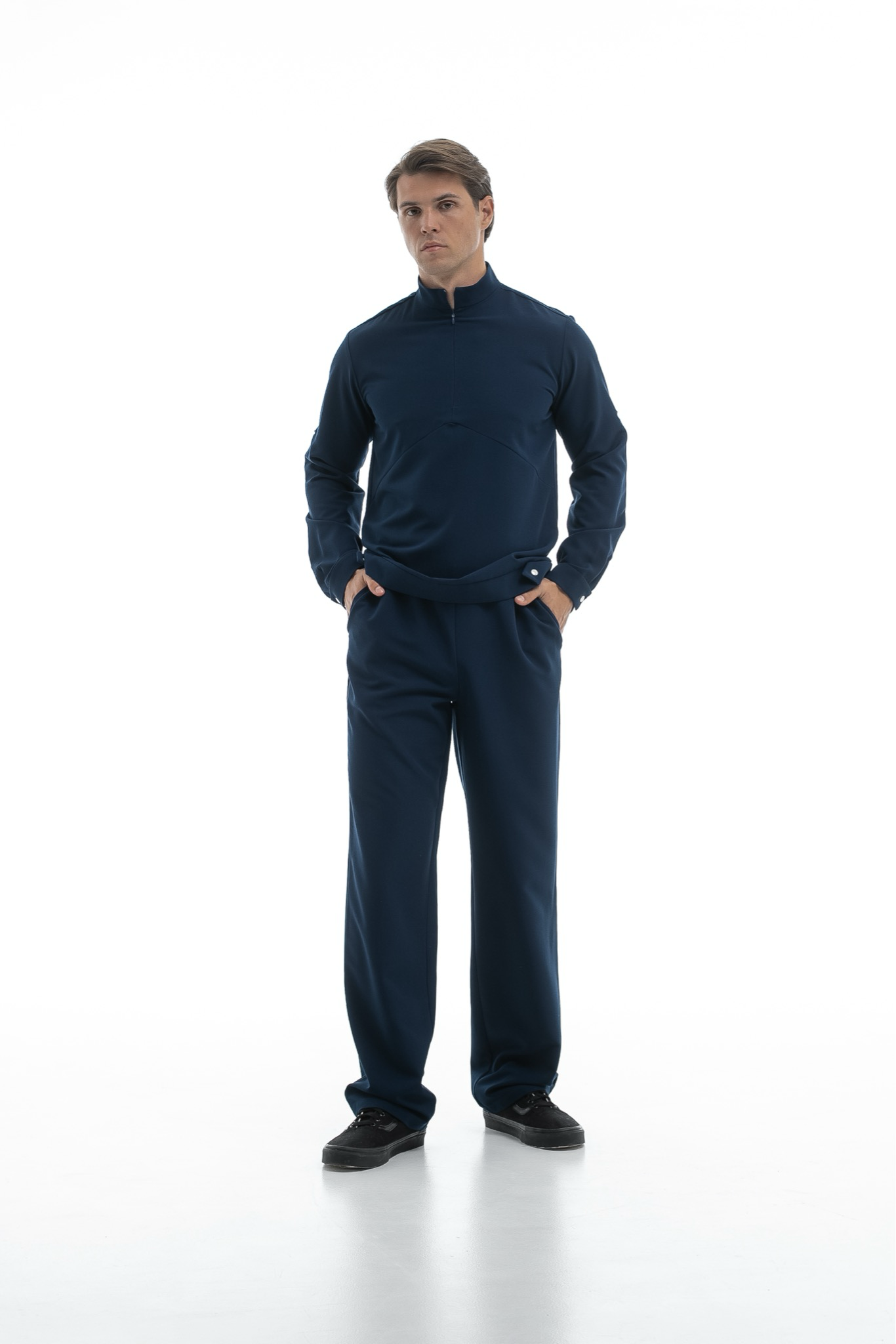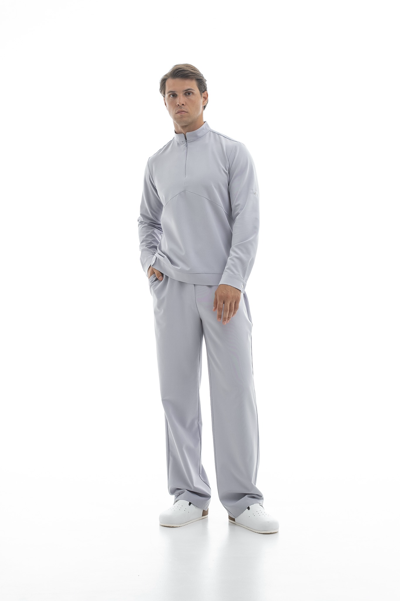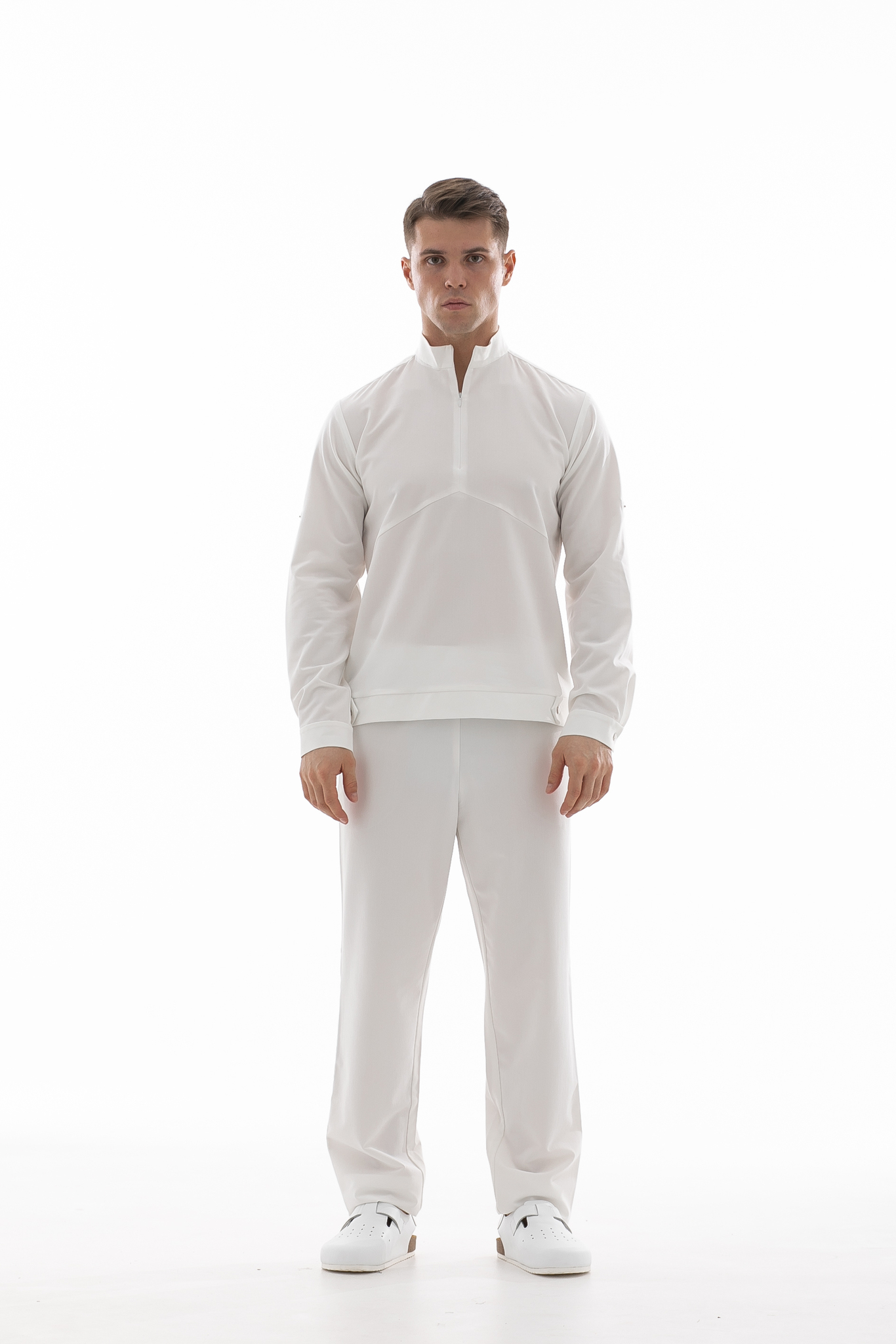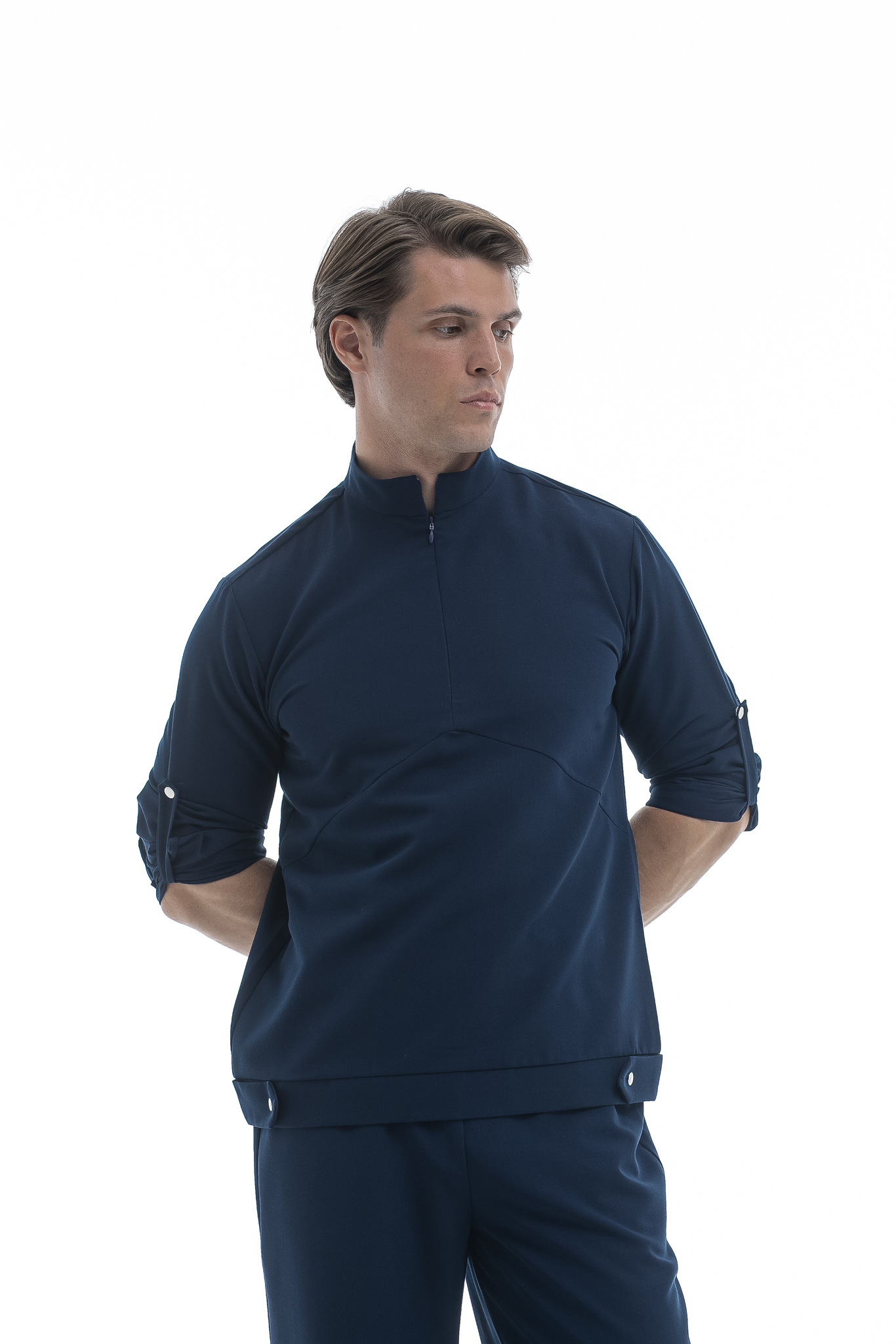 Свободная блуза в стиле оверсайз для максимального комфорта. Удобная горловина с молнией позволяет регулировать посадку, а рукава с кнопками можно закатать. Универсальная модель, которая легко сочетается с брюками Balance и джоггерами. Идеальная основа для расслабленного рабочего образа.