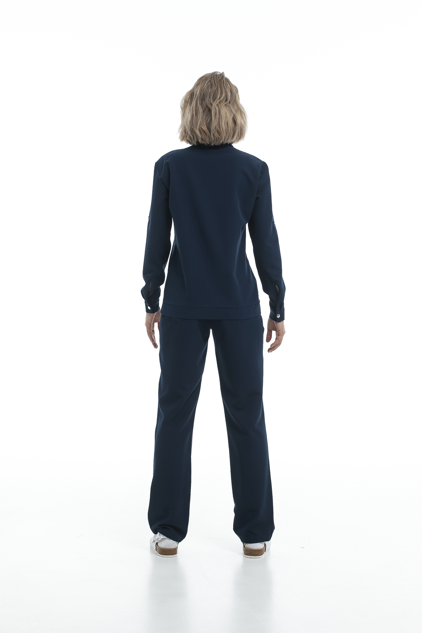 Элегантная блуза свободного кроя с фигурным вырезом для любителей оверсайза. Молния на горловине и манжеты с кнопками добавляют функциональности и стиля. Прекрасно комбинируется с брюками клеш, джоггерами и моделями с разрезами. Для базового слоя дополните образ нашим топом или лонгсливом.