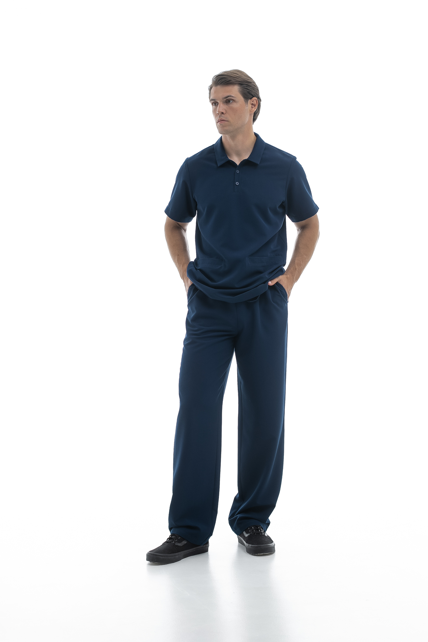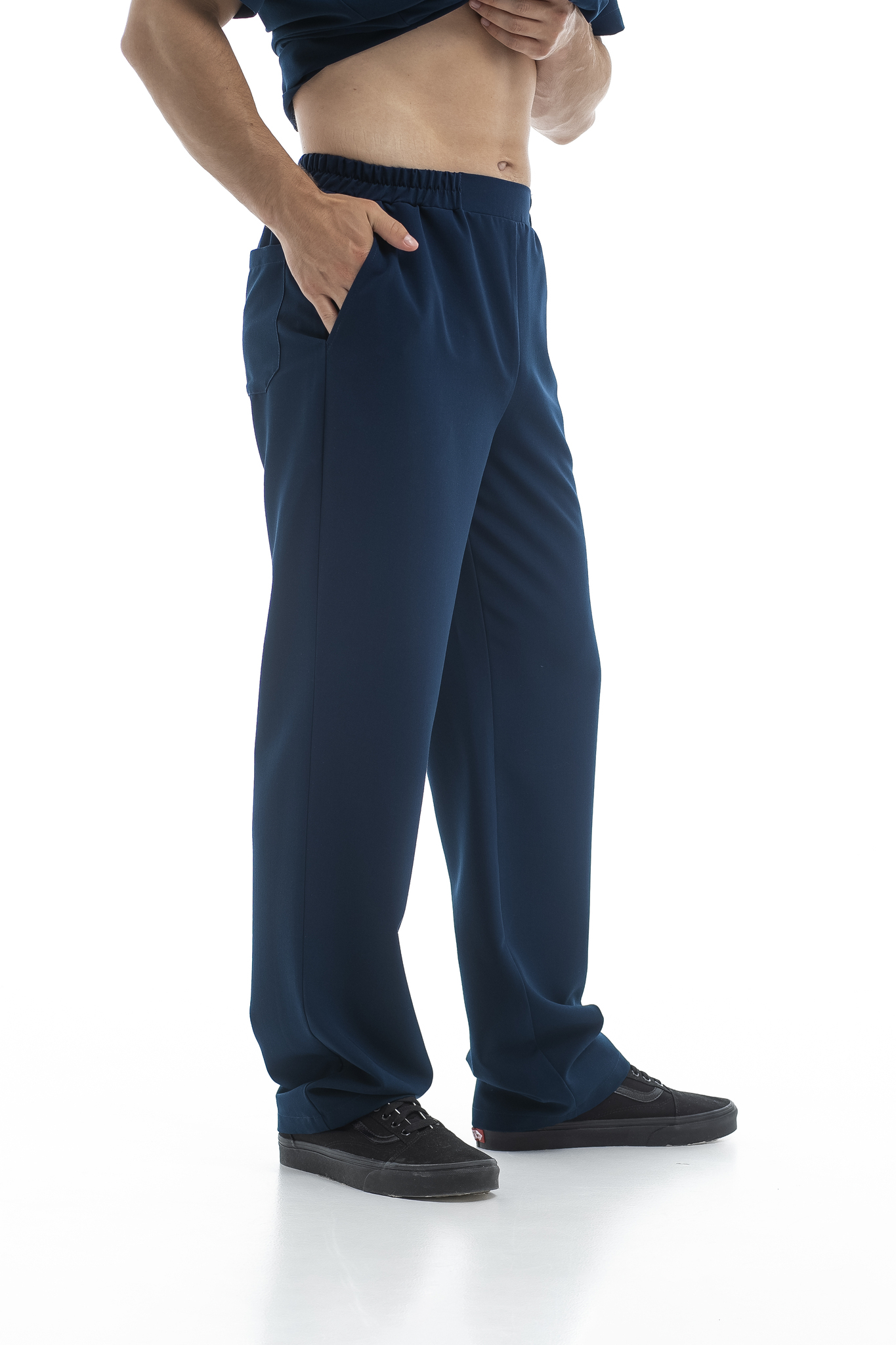 Посадка брюк может быть как стандартной длины, так и укороченной. Зависит от выбранной вами ростовки.