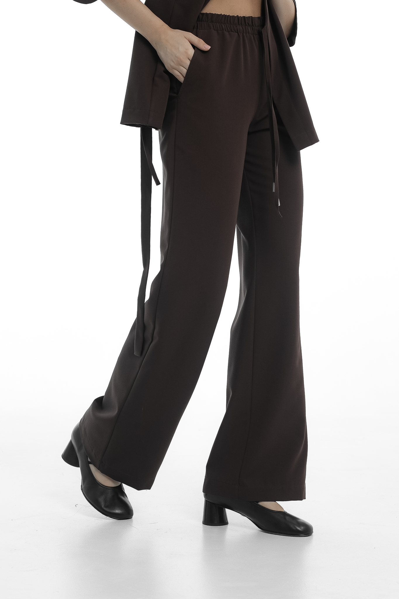 Женственные брюки свободного кроя, визуально вытягивающие силуэт за счет лаконичных линий. Резинка на талии гарантирует идеальную посадку, а функциональные карманы отвечают потребностям работы. Элегантное решение для создания утонченного профессионального образа.