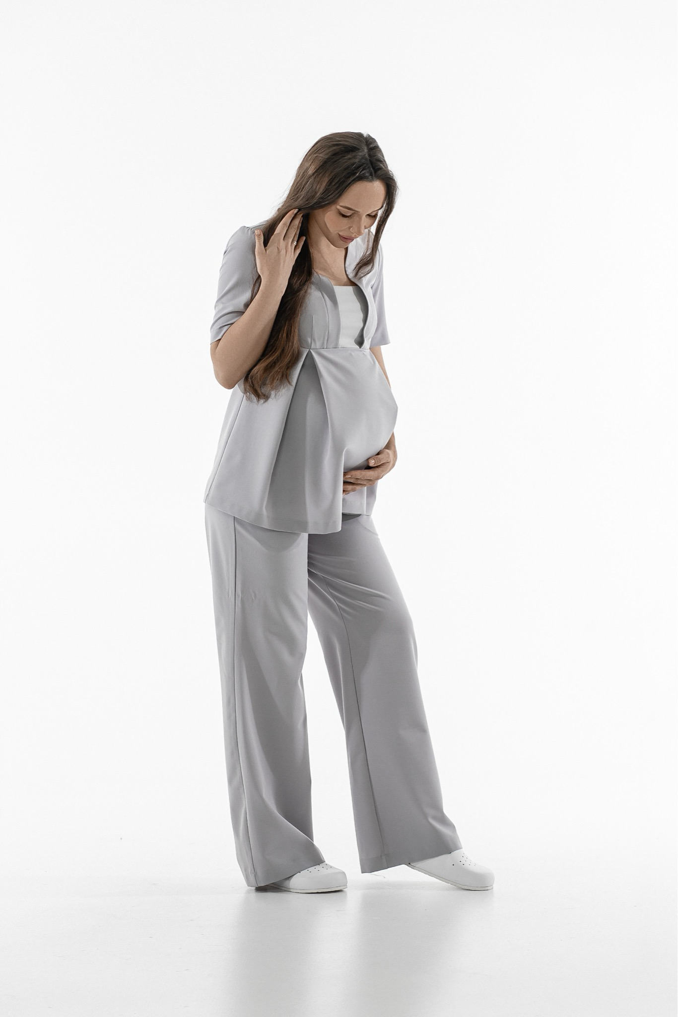 Свободные брюки клеш, разработанные специально для будущих мам. Эластичный пояс и мягкая ткань обеспечивают комфорт в течение всего дня. Два просторных внутренних кармана удобны для хранения мелочей. Прекрасно комбинируются с блузами для беременных и блузой на запах.