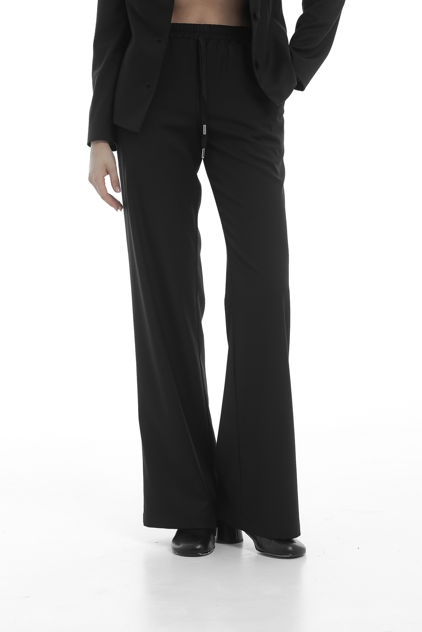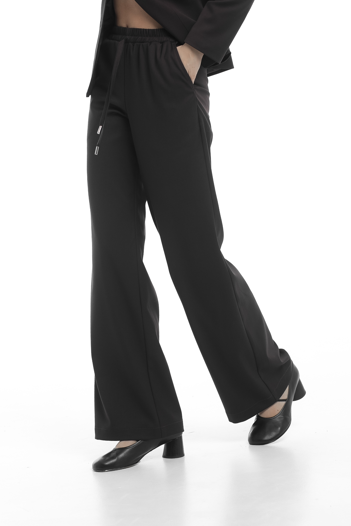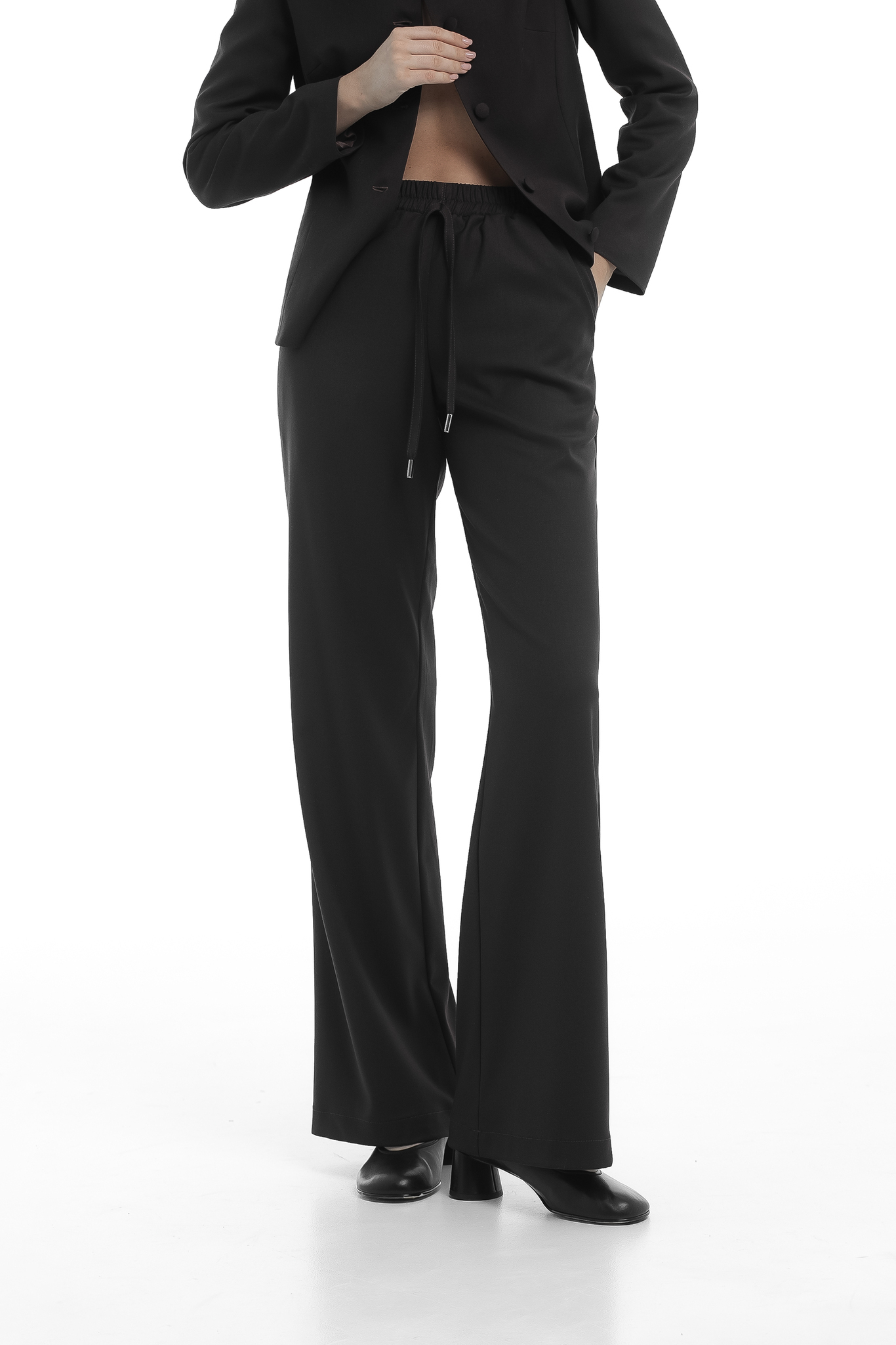 Элегантные брюки клеш из уплотненной поливискозы сделают любой образ более утонченным. Пояс на резинке позволяет легко регулировать размер на талии, а два просторных внутренних кармана добавляют функциональности.