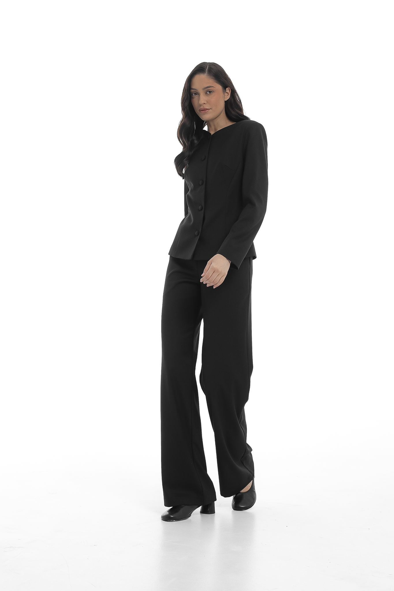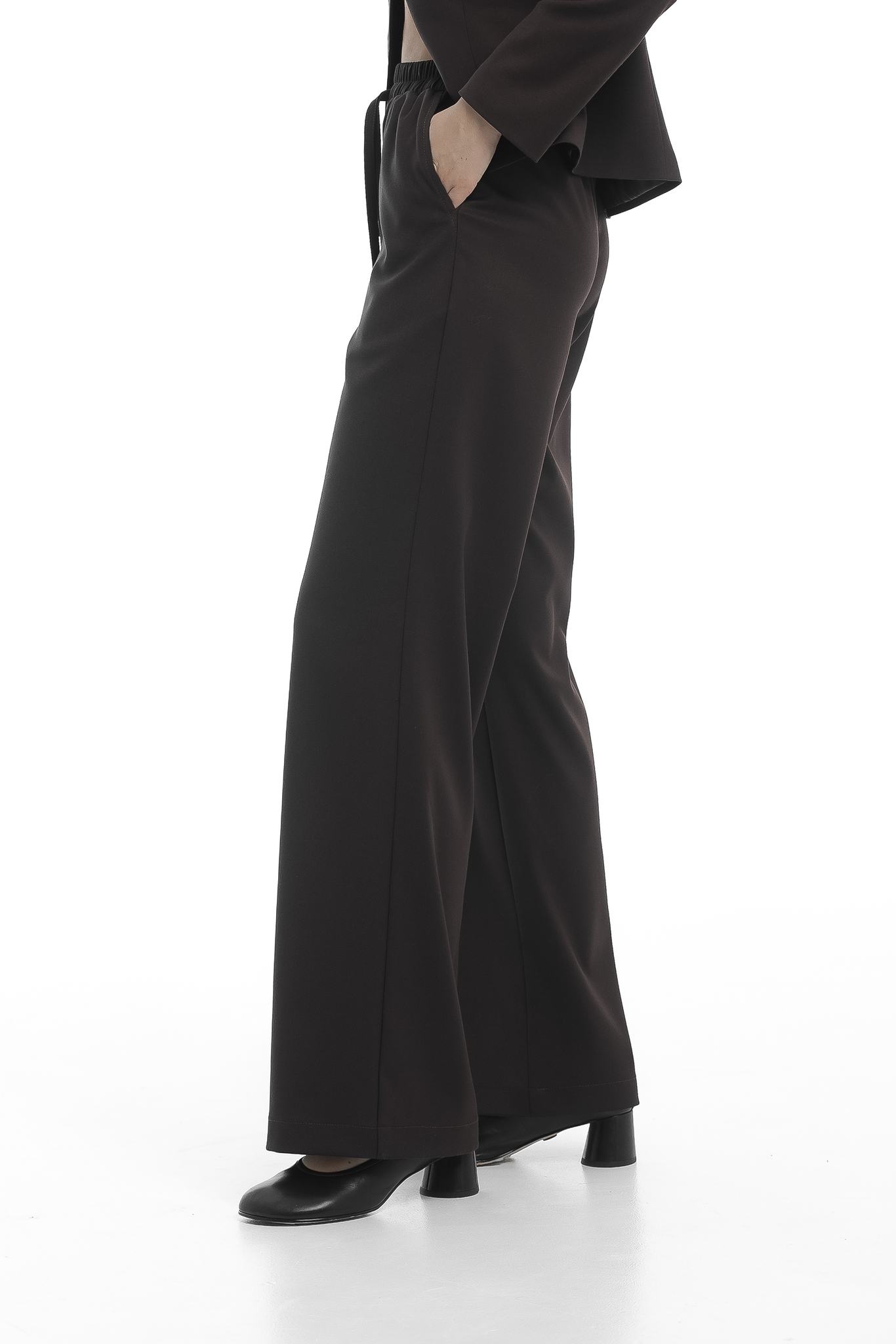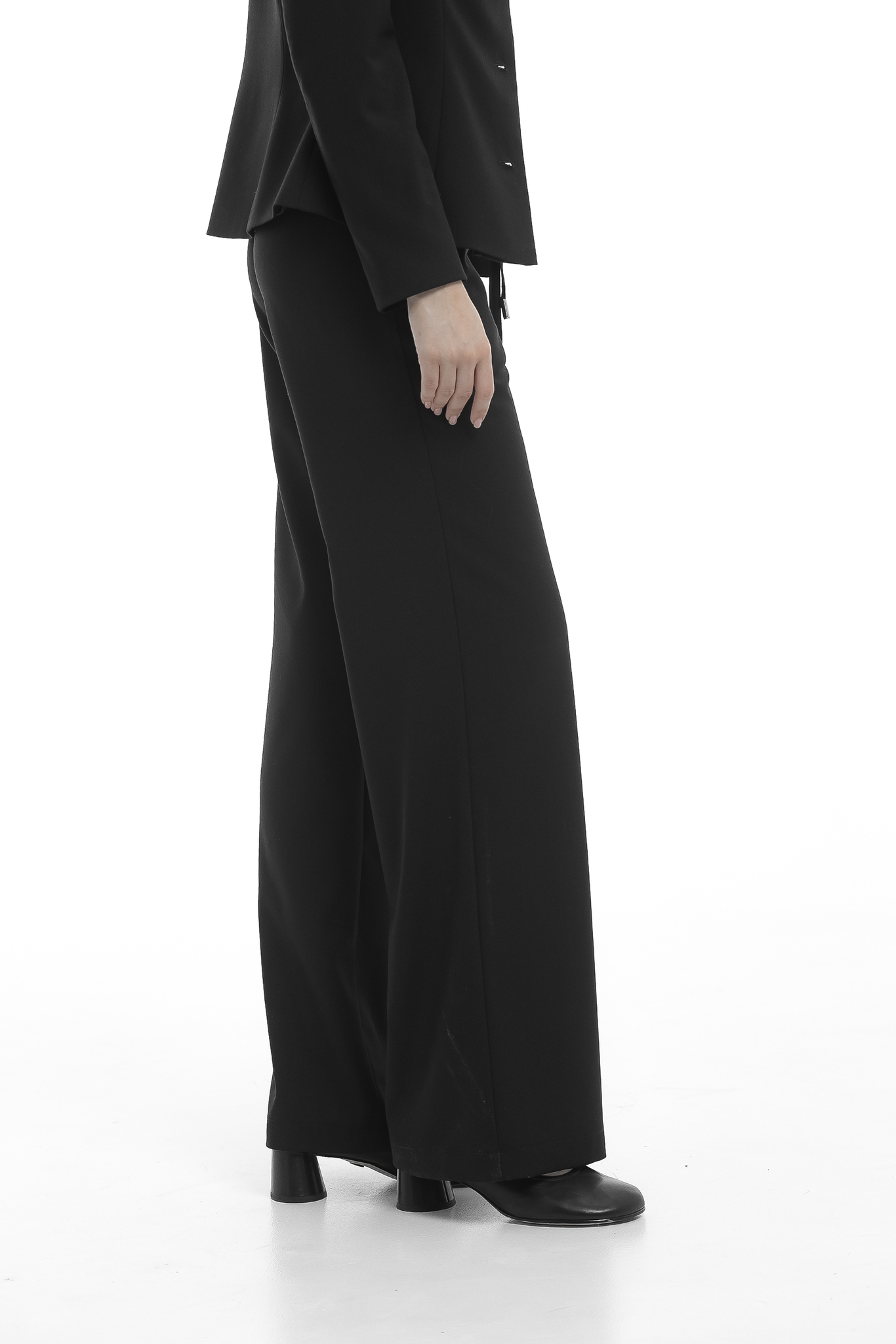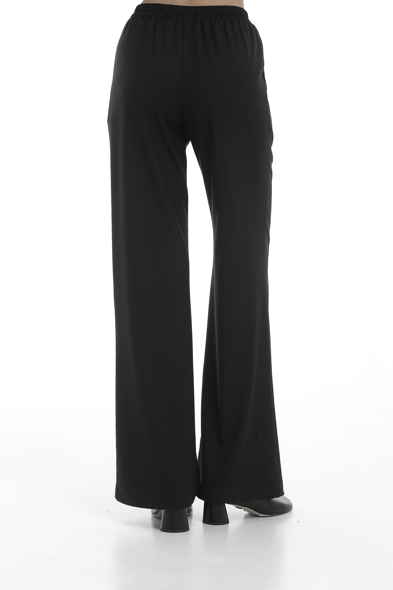 Элегантные брюки клеш из уплотненной поливискозы сделают любой образ более утонченным. Пояс на резинке позволяет легко регулировать размер на талии, а два просторных внутренних кармана добавляют функциональности.