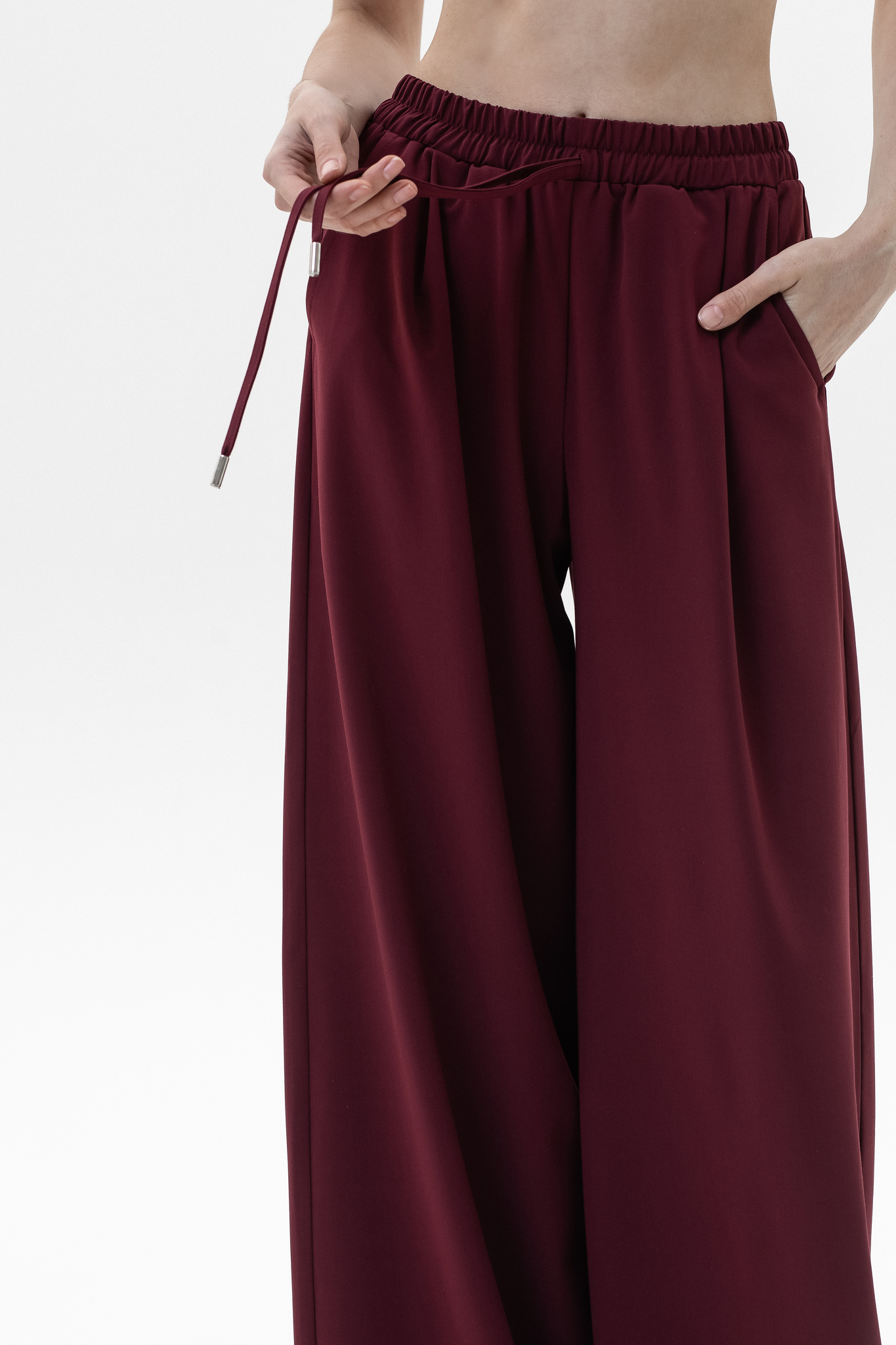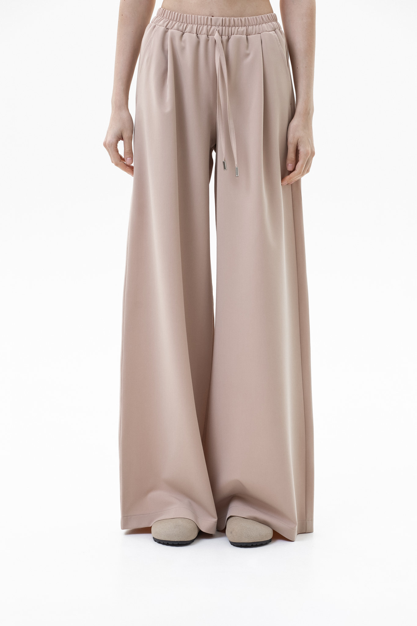 Брюки-палаццо выполнены из поливискозы, которая сохраняет форму и безупречный внешний вид даже после многочисленных стирок. Лёгкая, воздухопроницаемая ткань не перегревается и не прилипает к телу, обеспечивая комфорт на протяжении всего дня. Широкий крой дарит ощущение свободы, пояс на резинке со шнурком гарантирует удобную посадку, а врезные карманы подчеркивают функциональность. Идеальный баланс стиля и практичности.