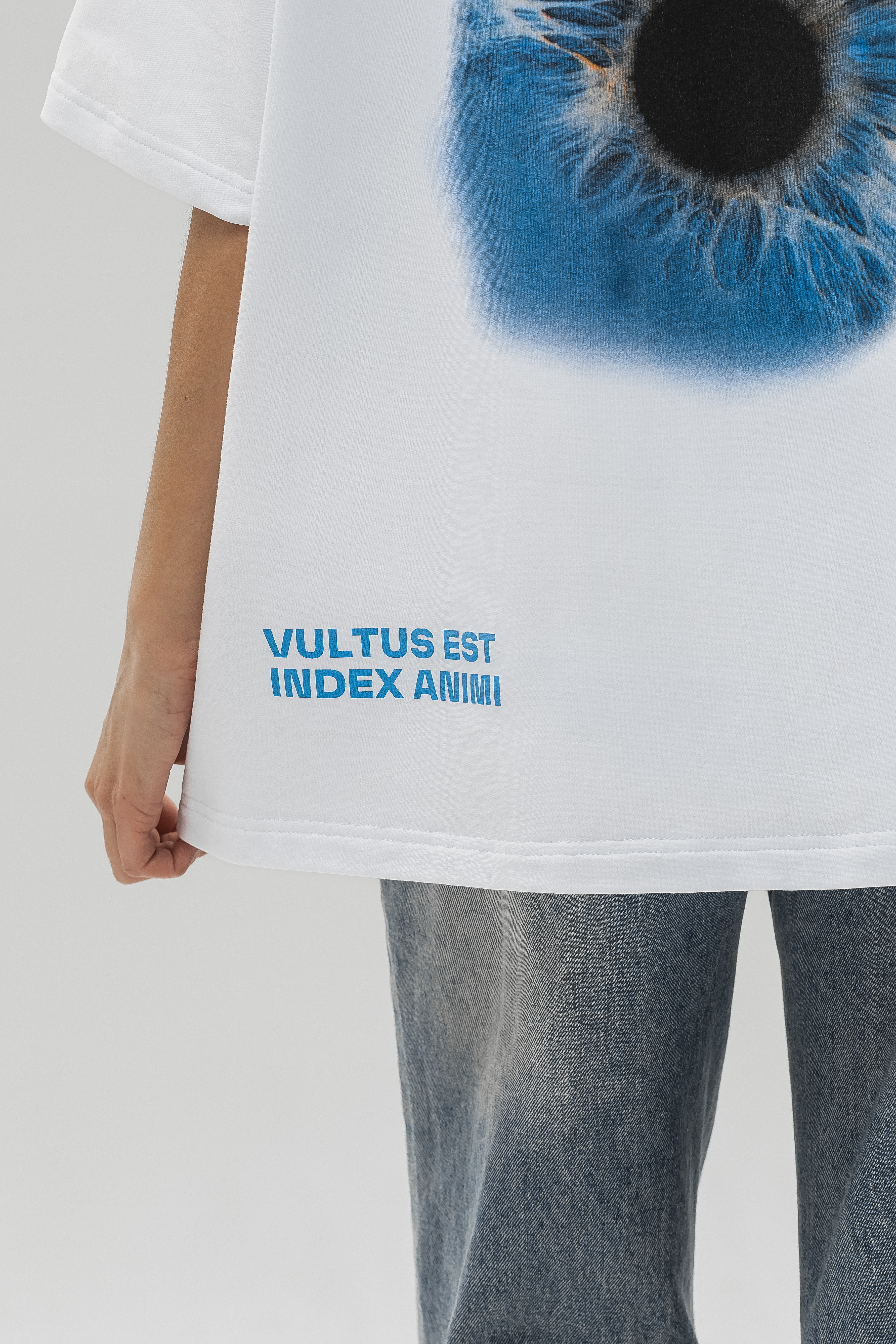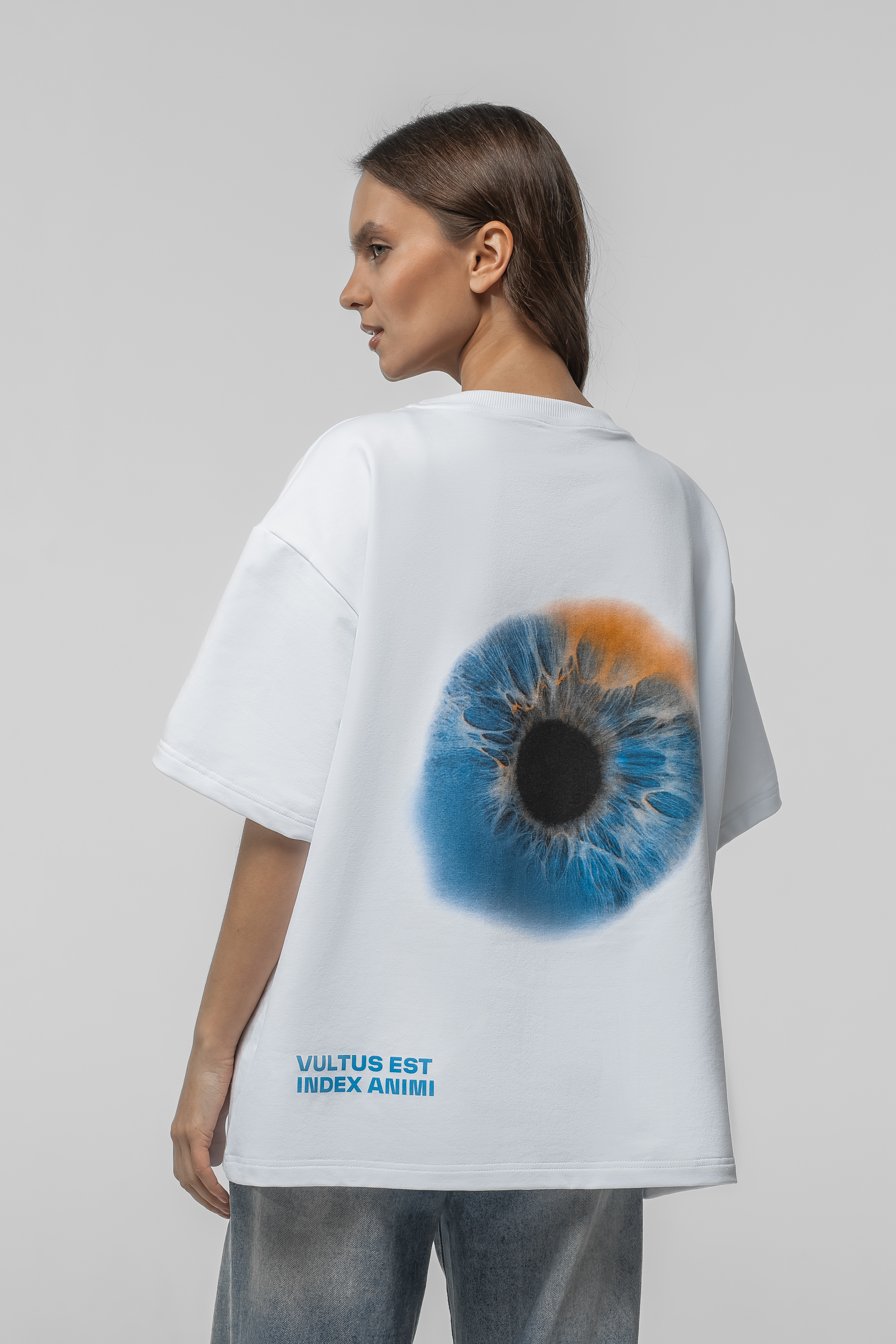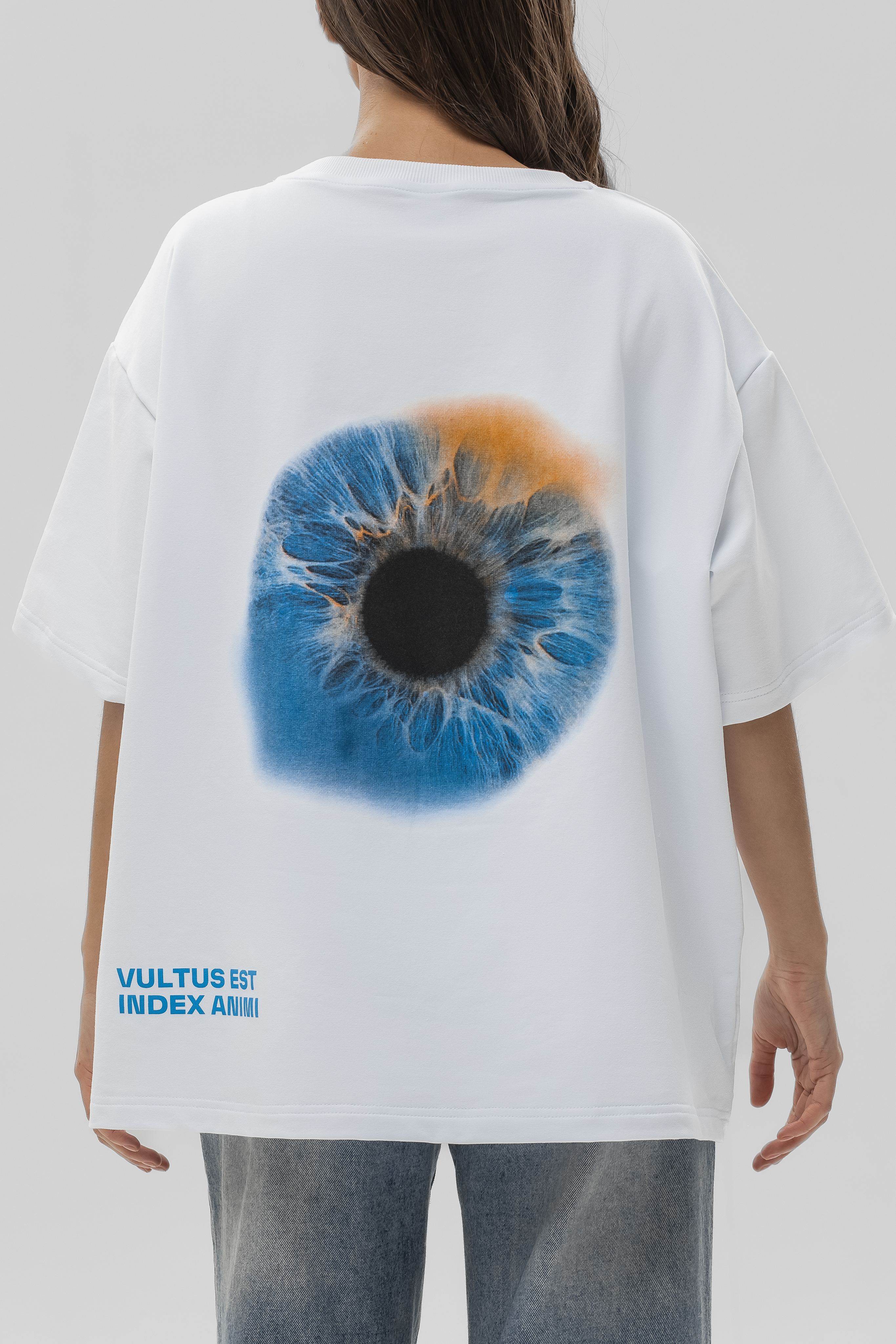 Футболка OPHTHAL с принтом спирали радужки отражает ваш внимательный взгляд и привычку замечать важные нюансы, которые делают результат точным и осмысленным.