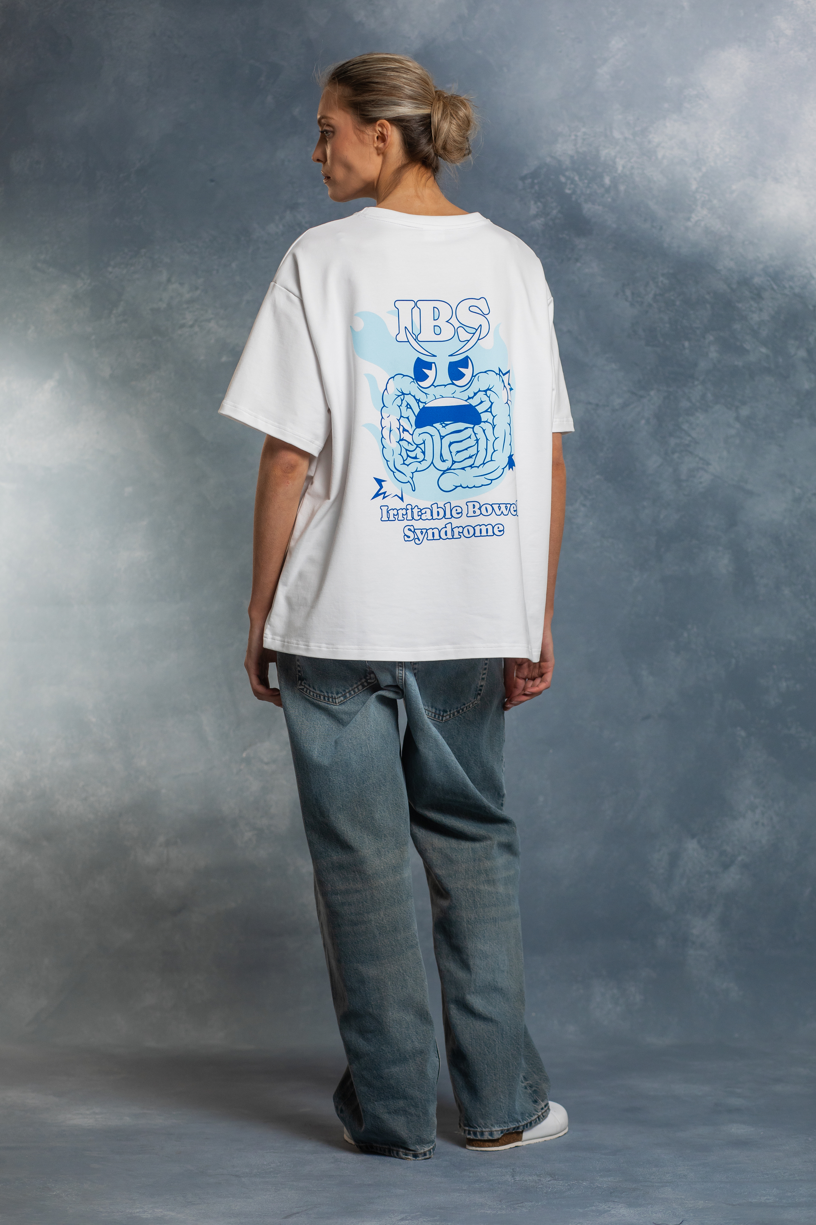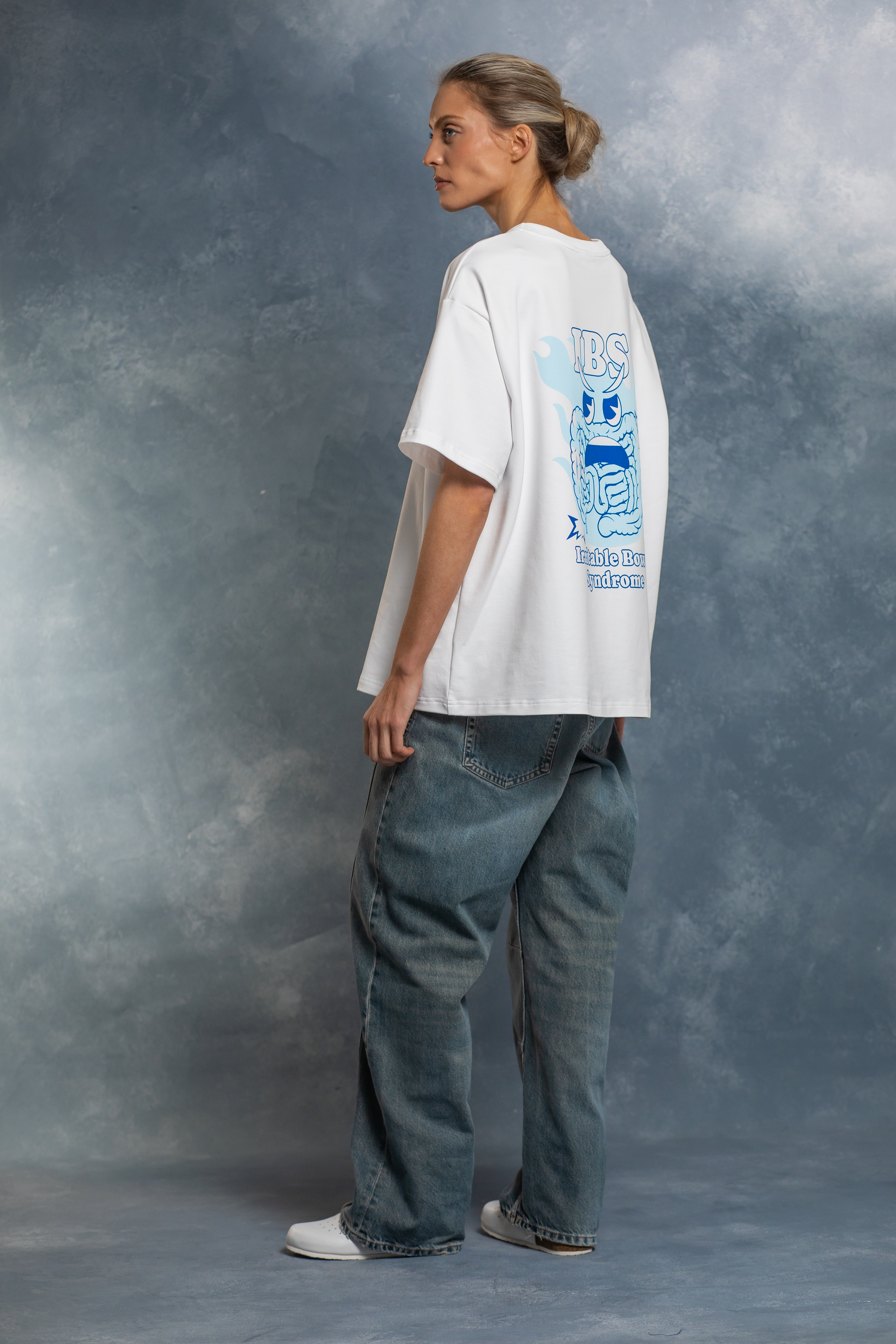 Плотный премиальный хлопок не теряет форму после стирок. Оверсайз-крой — свобода, в которой хочется жить. Широкая горловина, продуманная длина, широкий рукав: вещь сидит комфортно с утра до вечера.