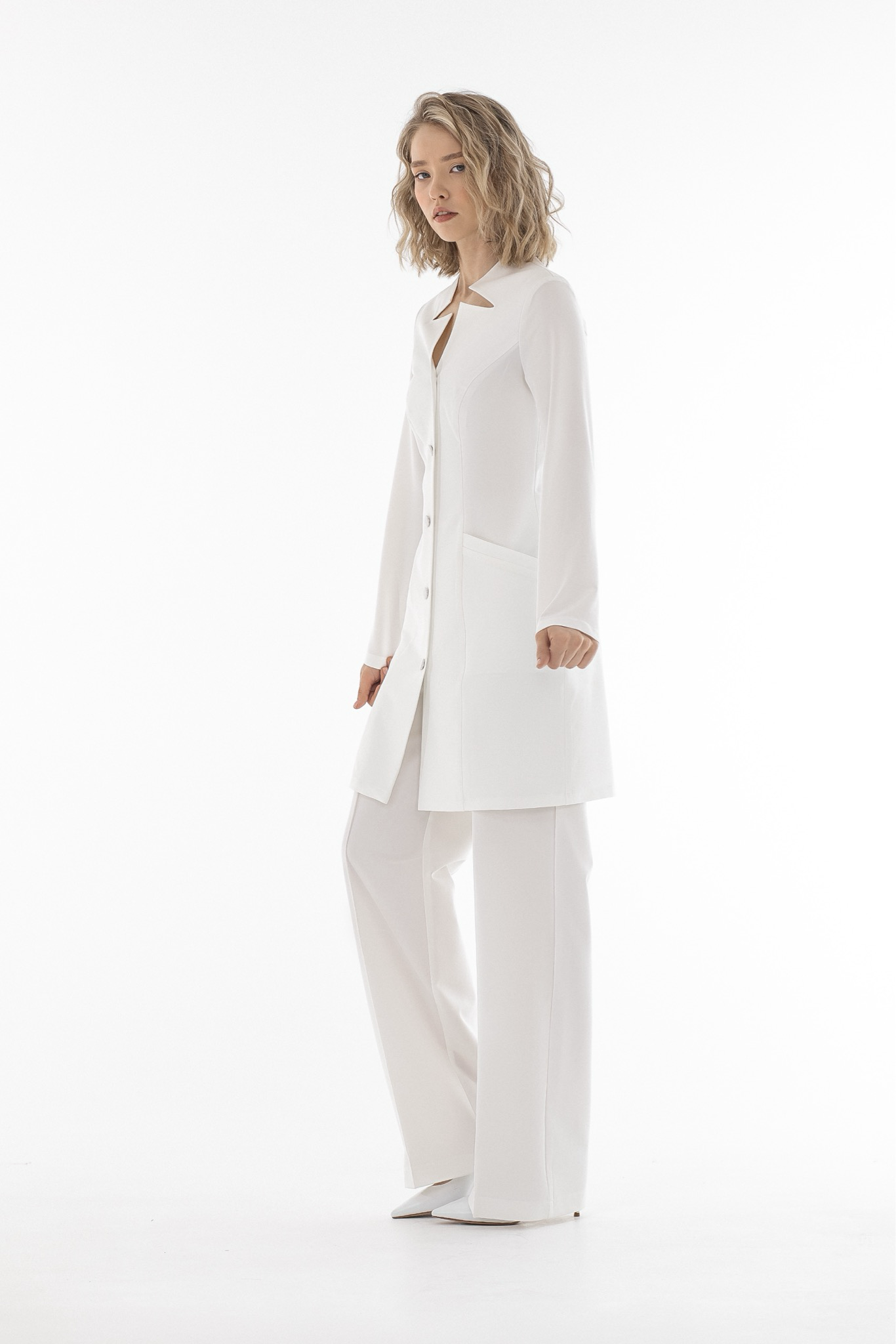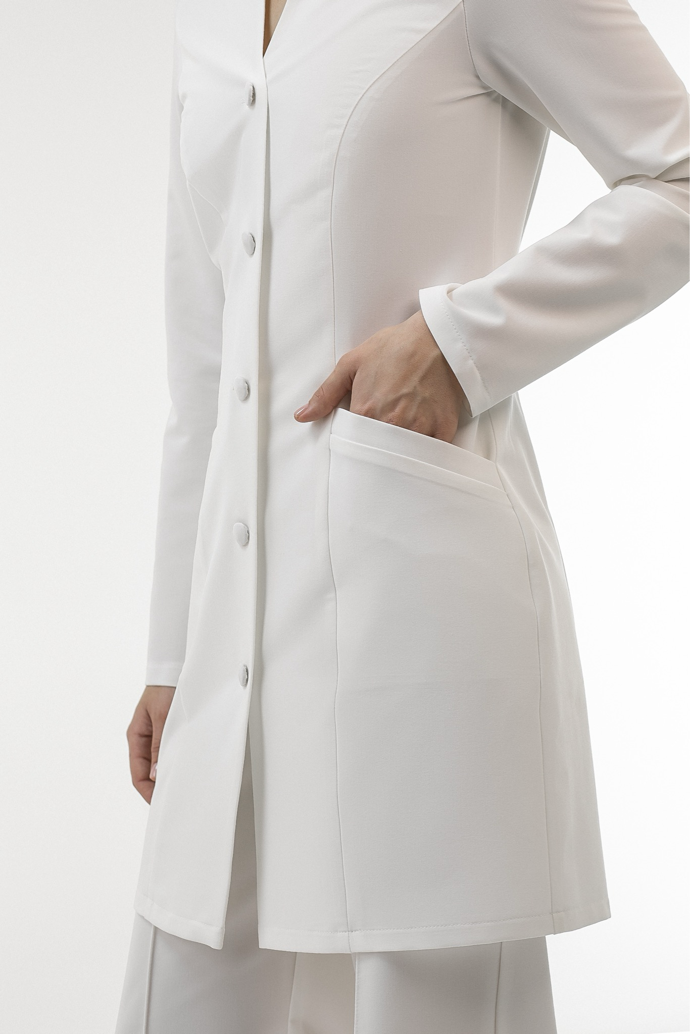 Халат Лили с фигурным вырезом — это идеальное сочетание стиля и комфорта для профессионалов. Приталенное однобортное изделие с длинными рукавами подчеркнет вашу фигуру и добавит элегантности вашему образу. Утонченный силуэт дополняется прилегающим воротником-стойкой с оригинальным фигурным вырезом, который придает халату уникальность.