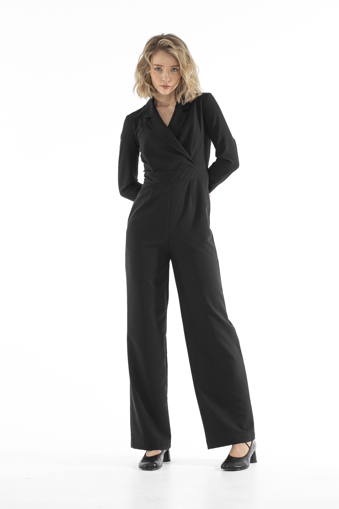 Элегантный комбинезон в пиджачном стиле для безупречного внешнего вида. Вшитый пояс подчеркивает талию, а прямые брюки с завышенной посадкой визуально удлиняют ноги. Потайная молния сзади и декоративные защипы добавляют практичности и стиля.