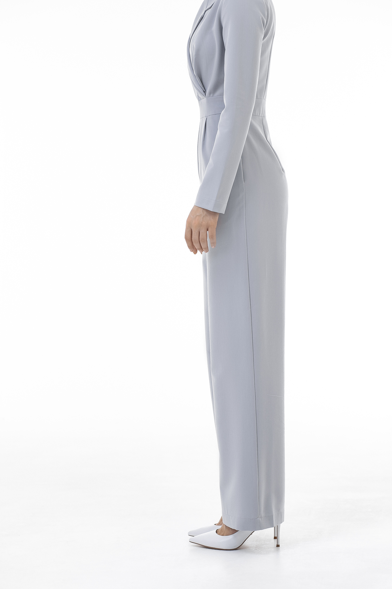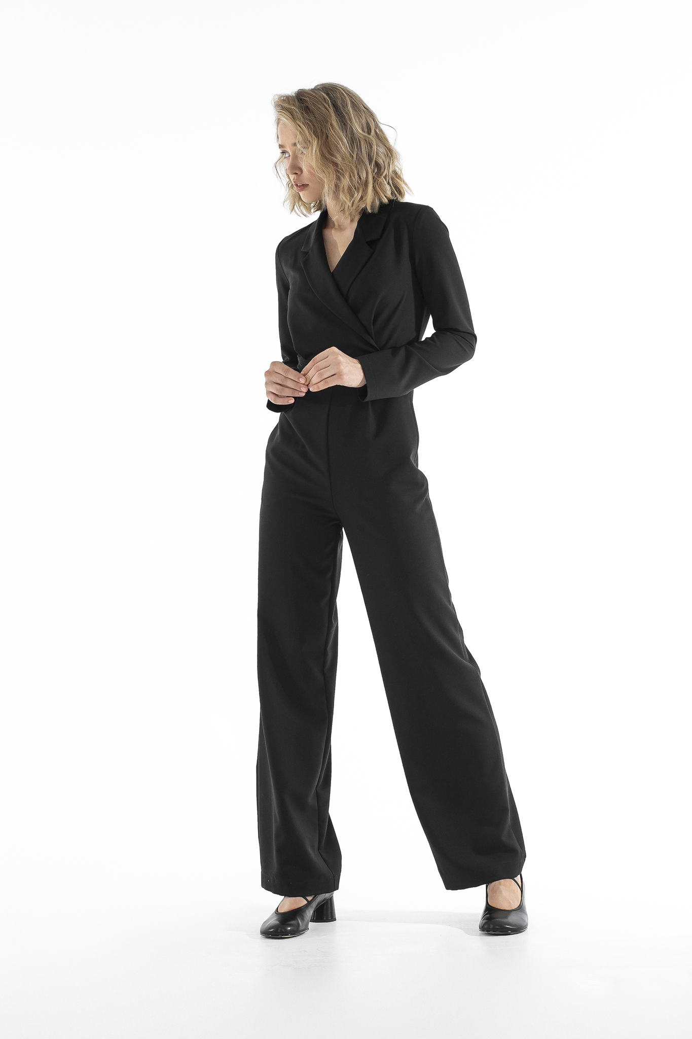 Элегантный комбинезон в пиджачном стиле для безупречного внешнего вида. Вшитый пояс подчеркивает талию, а прямые брюки с завышенной посадкой визуально удлиняют ноги. Потайная молния сзади и декоративные защипы добавляют практичности и стиля.