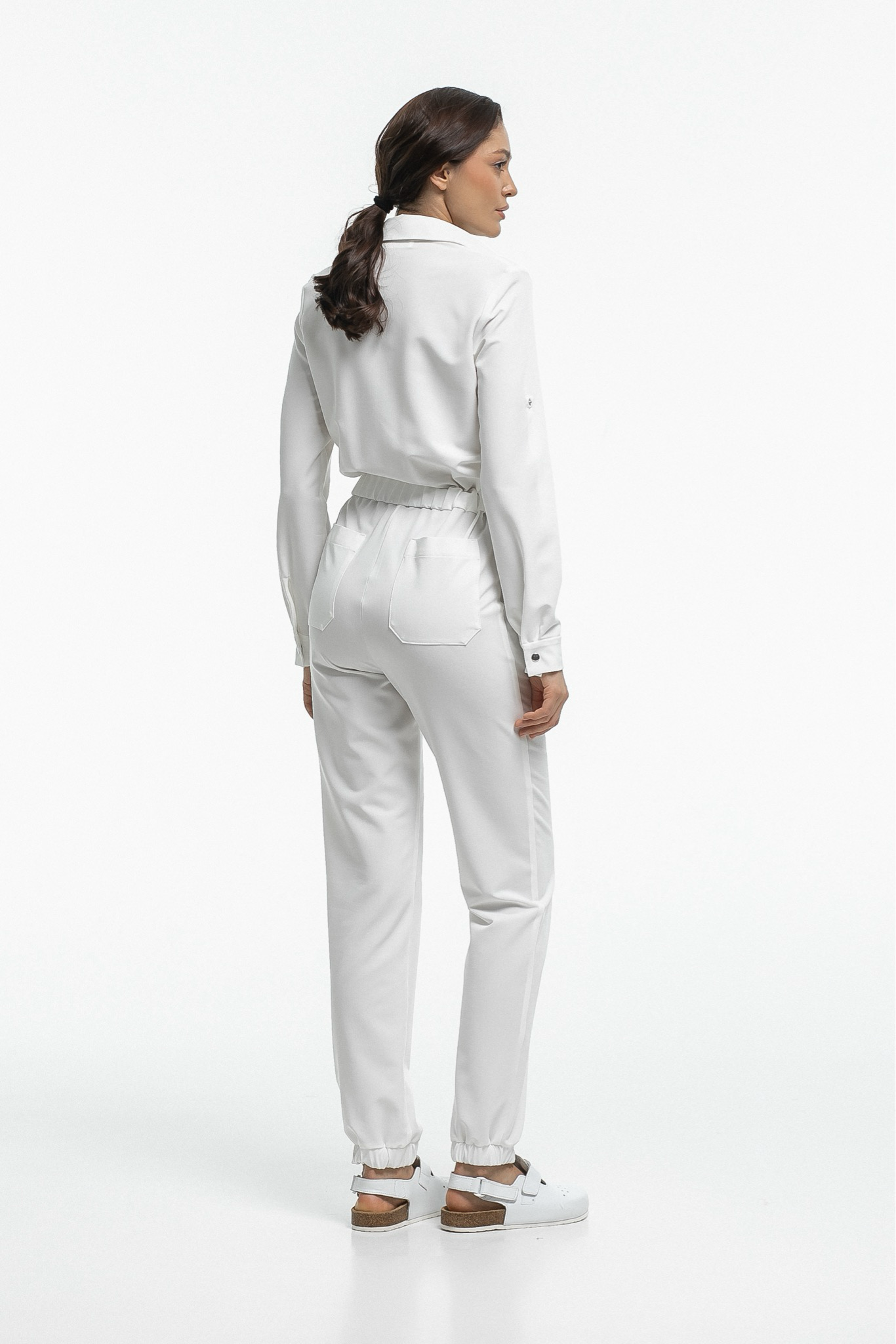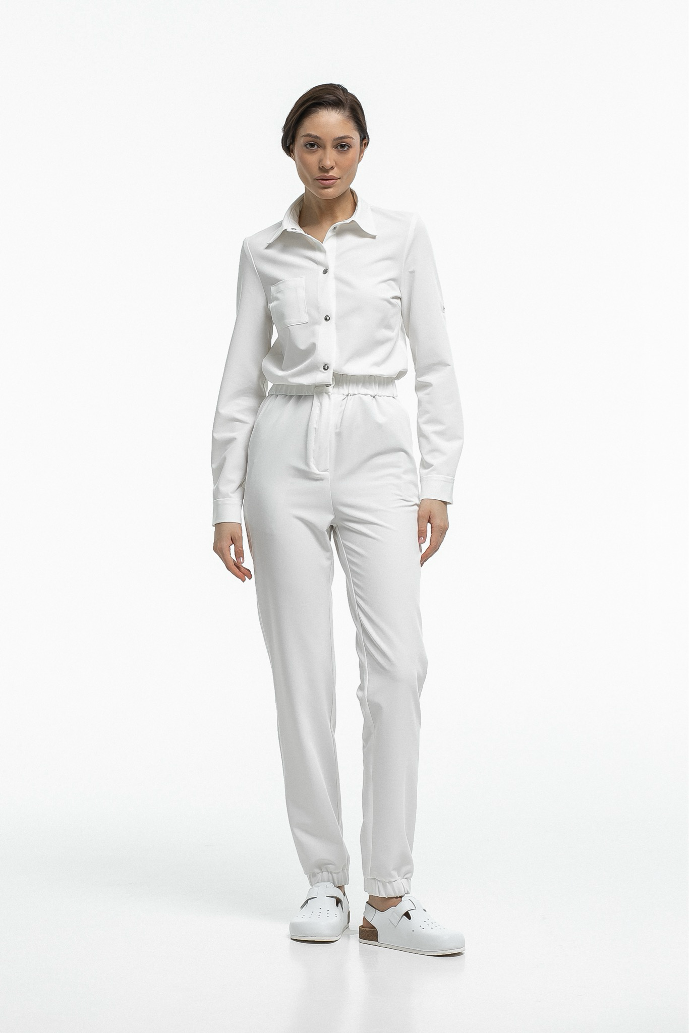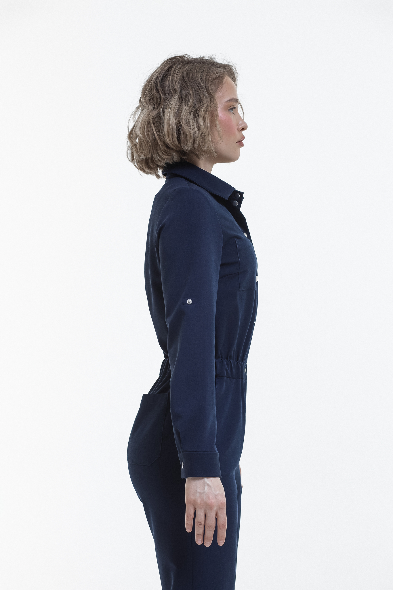 Стильный комбинезон свободного кроя с пятью практичными карманами. Резинка на талии и удобная застежка на кнопках обеспечивают комфортную посадку. Специализированная медицинская ткань гарантирует воздухопроницаемость и легкость. Универсальная модель, которую можно носить с топом или лонгсливом для полного комфорта.