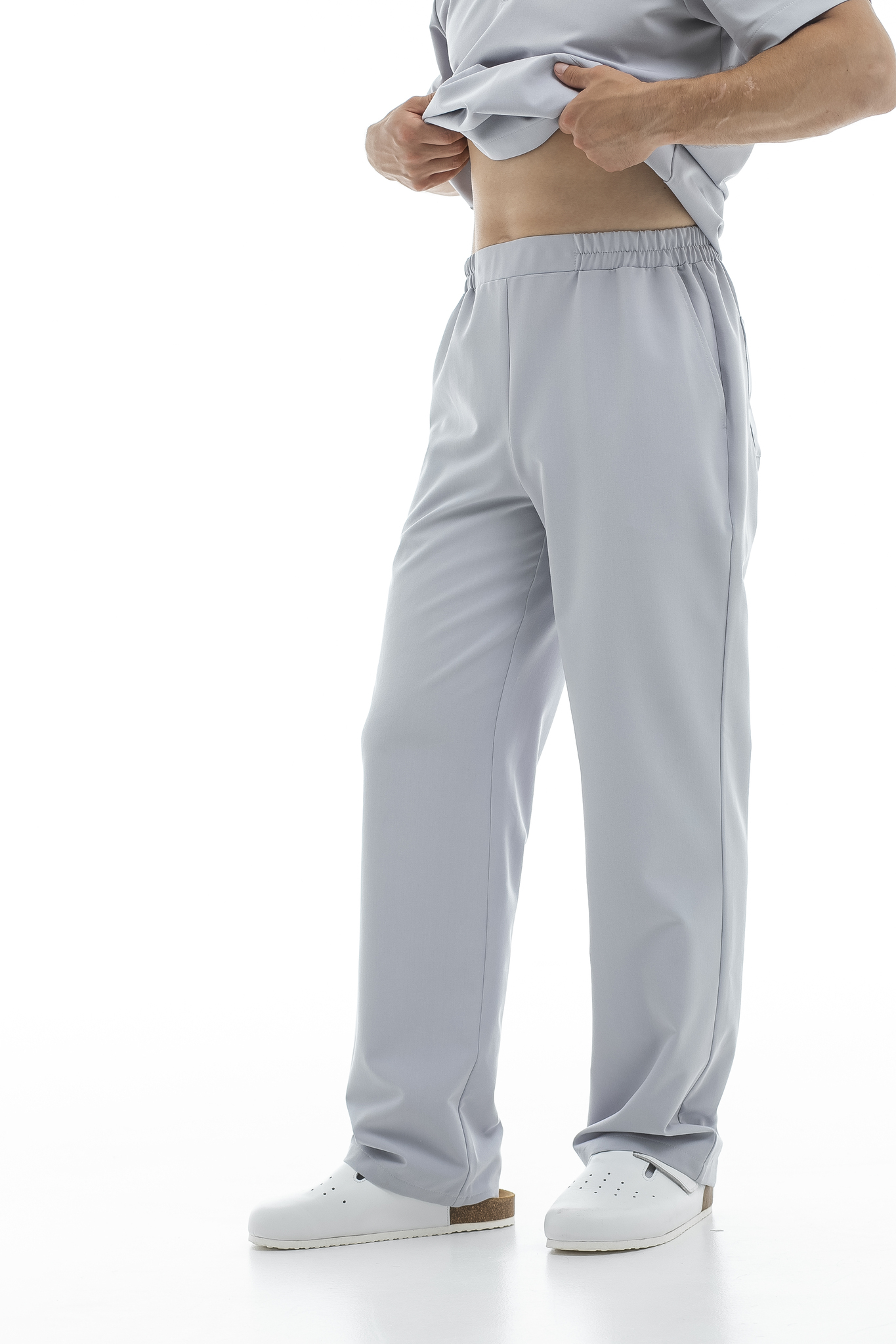 Комплект включает классические прямые брюки с свободным силуэтом, идеально подходящие для интенсивной работы. Ткань устойчива к загрязнениям и заломам, а пояс на резинке обеспечивает комфортную посадку. Два просторных внутренних кармана позволяют удобно хранить необходимые мелочи.