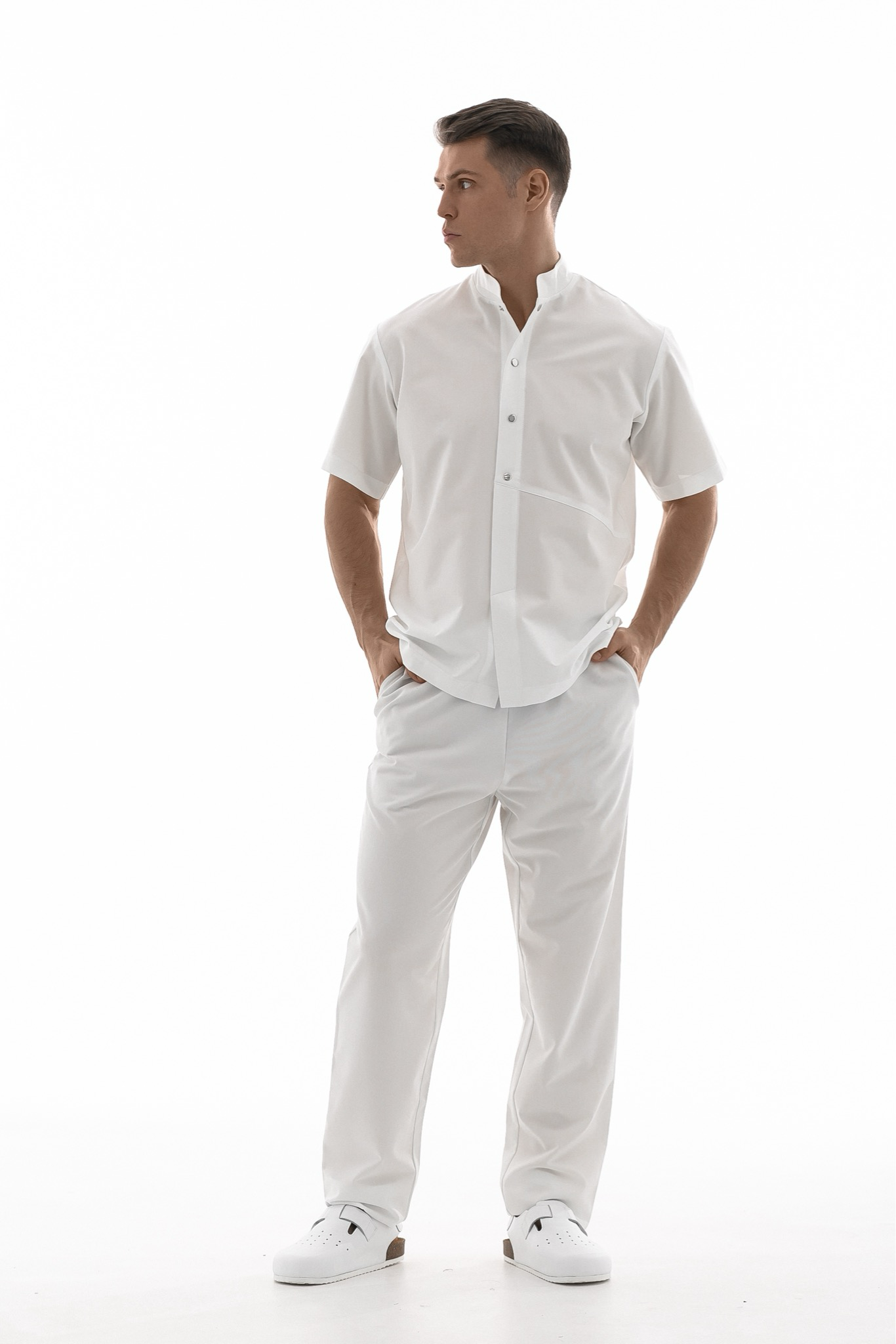 Брюки с свободным силуэтом идеально подходят для интенсивной работы. Ткань устойчива к загрязнениям и заломам, а пояс и манжеты на резинках обеспечивают дополнительный комфорт и свободу движений. Два просторных внутренних кармана позволяют удобно хранить все необходимые мелочи под рукой. Этот комплект не только обеспечивает максимальный комфорт при работе, но и выглядит актуально благодаря базовому крою, который никогда не выйдет из моды.