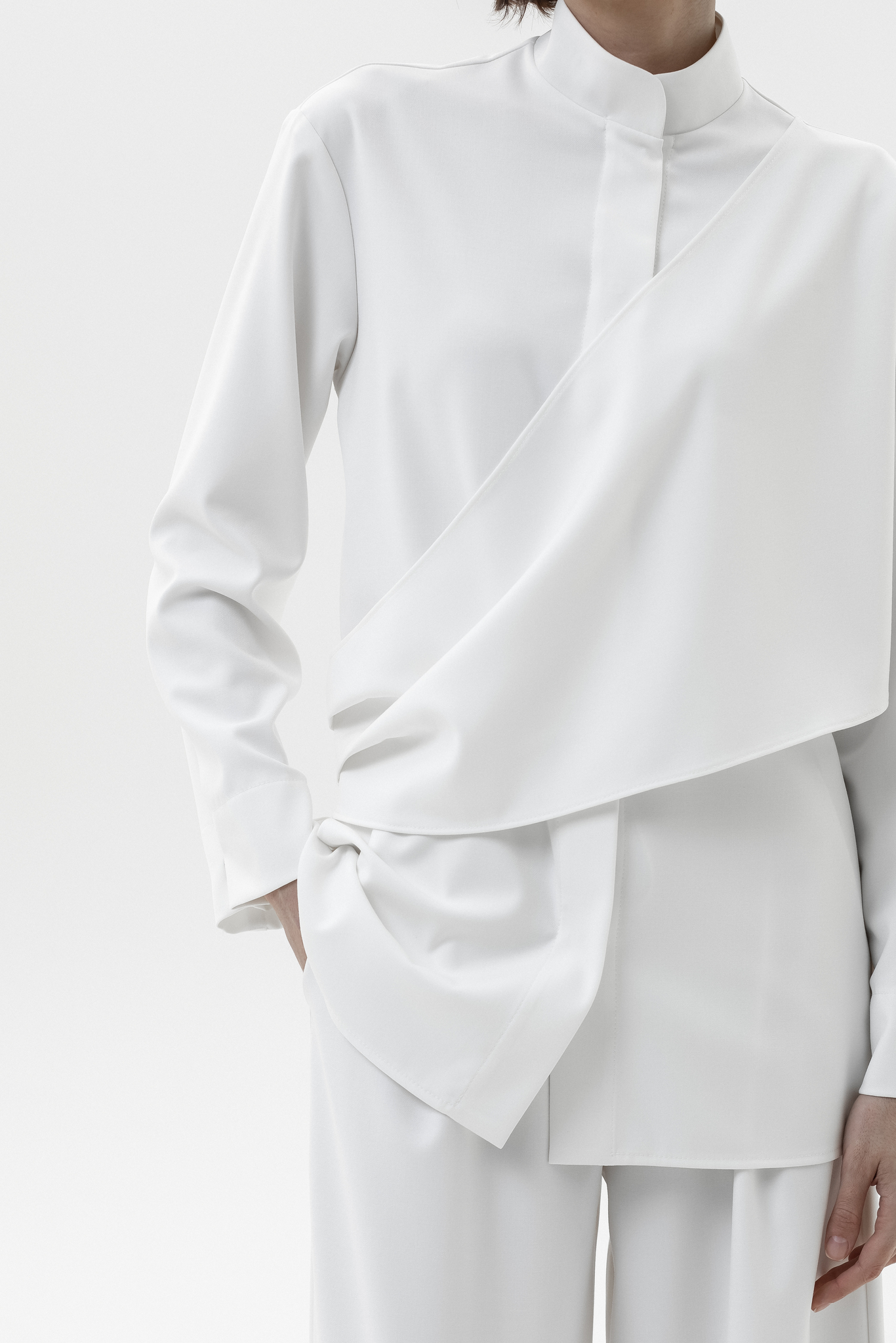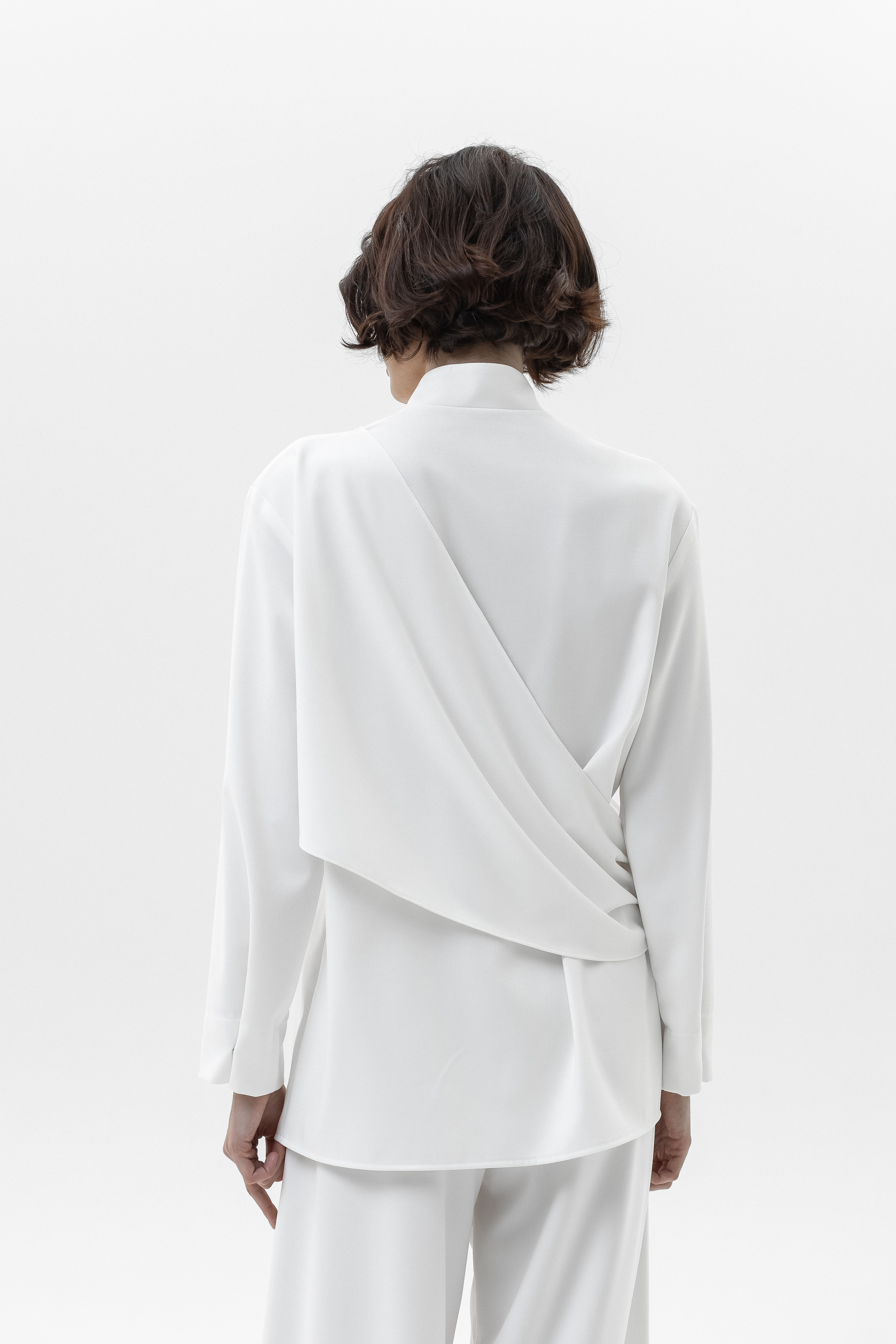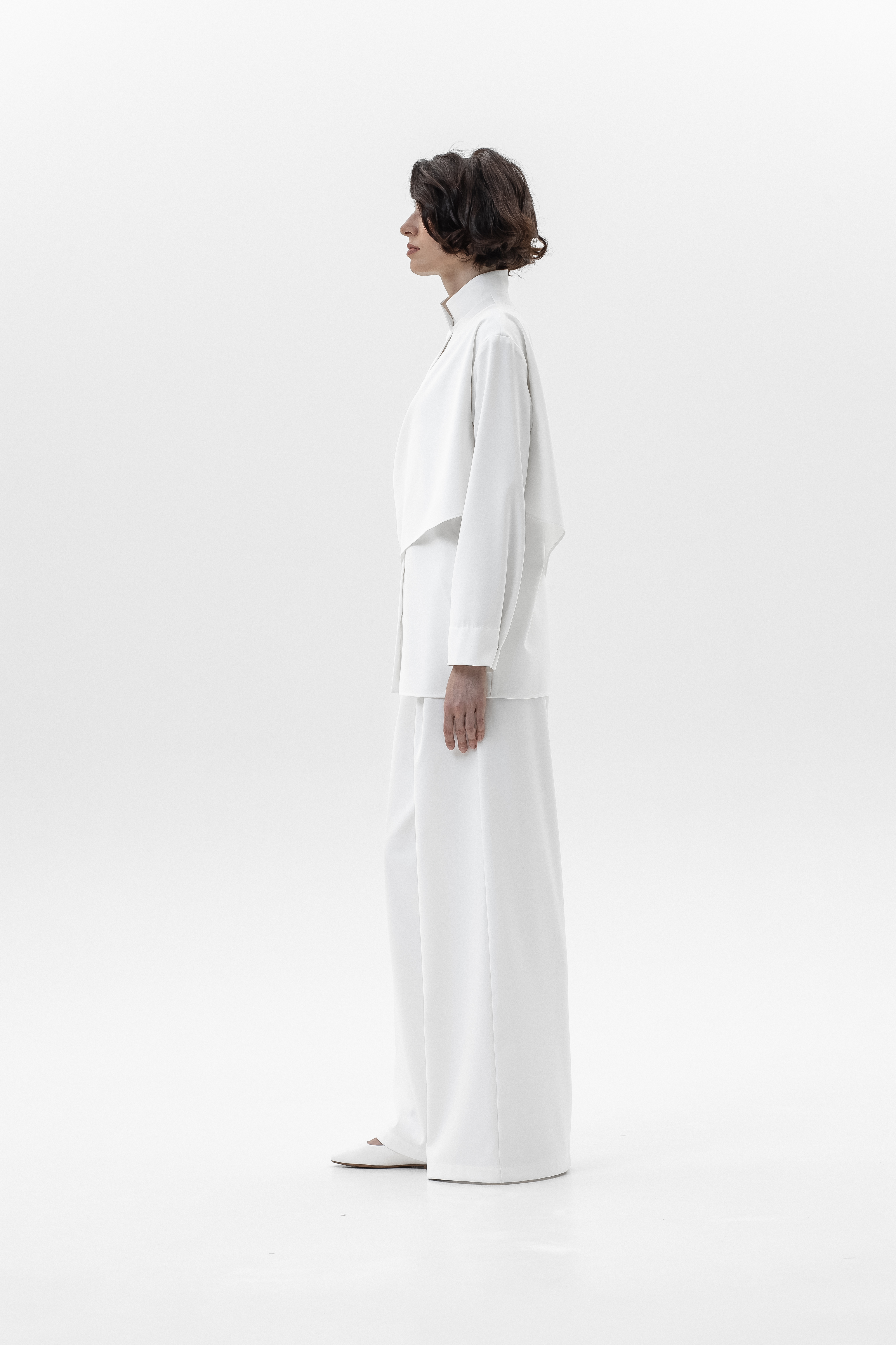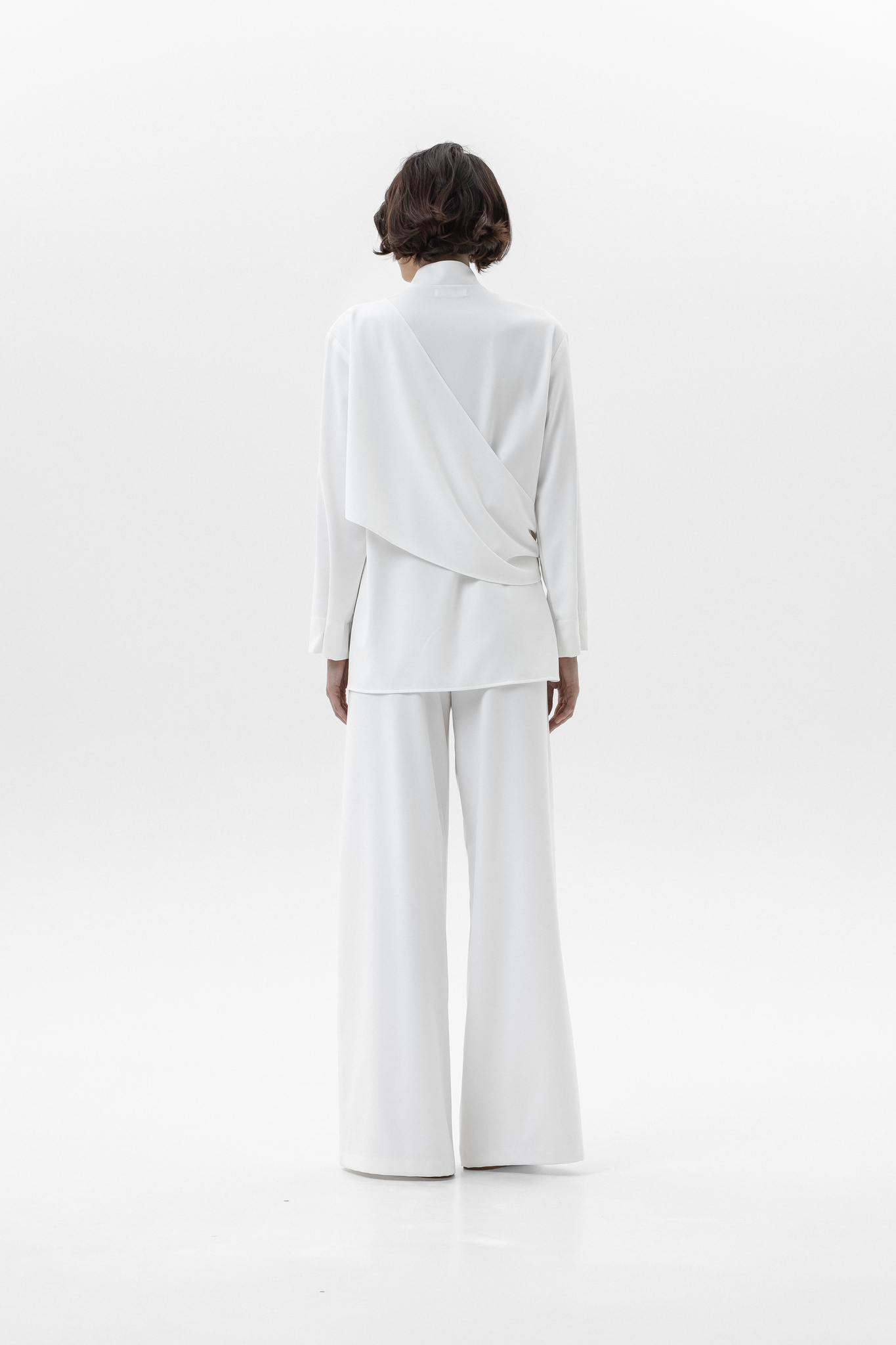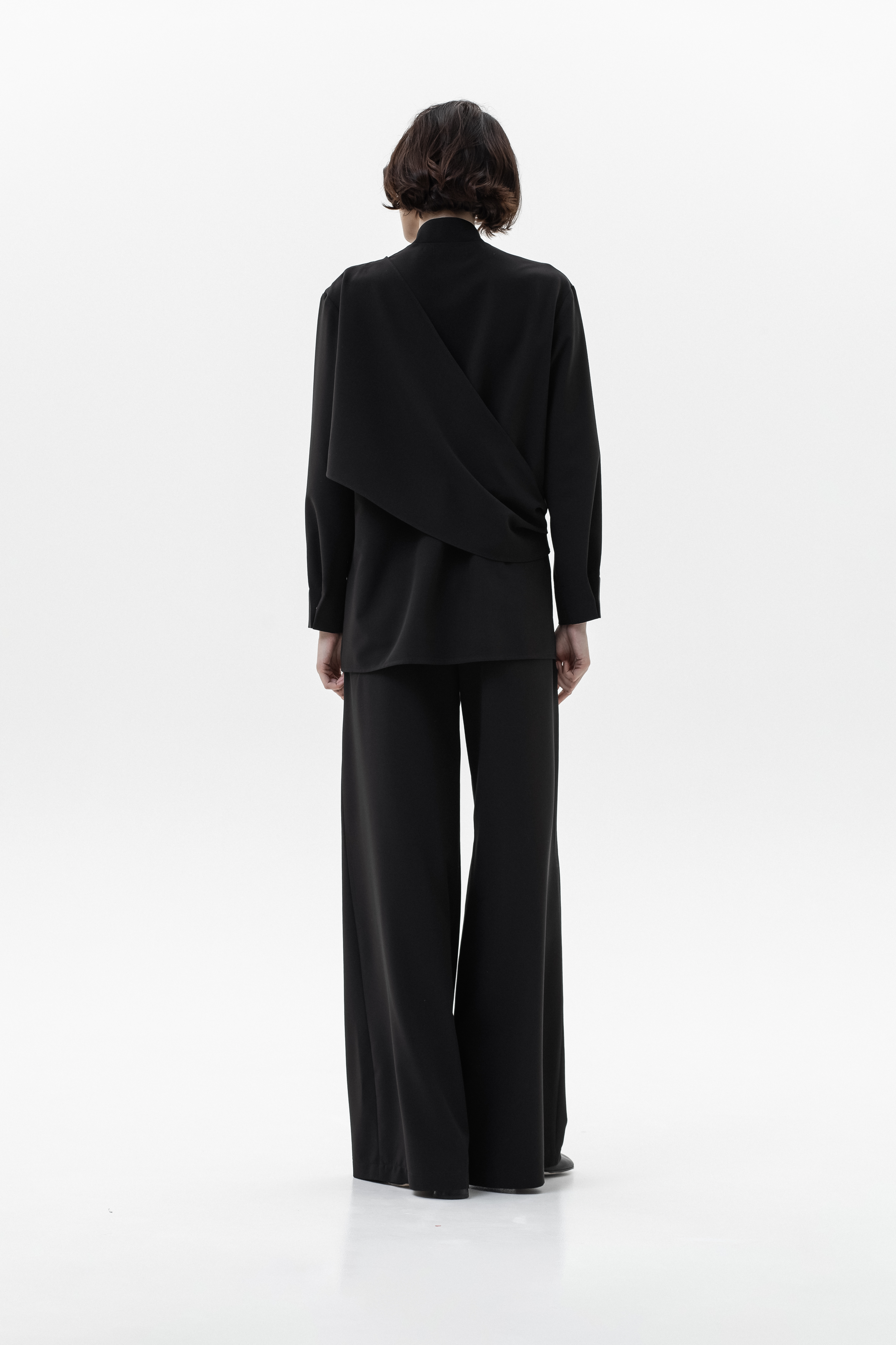 Элегантный и комфортный комплект, сочетающий блузу Mirage и брюки-палаццо, создан для стильных и уверенных в себе женщин. Блуза из мягкой, дышащей ткани с шелковистой текстурой и декоративной драпировкой спереди и на спинке подчеркивает изящный силуэт, а воротник-стойка и практичная застежка на кнопках добавляют строгости и функциональности. Рукава регулируются кнопками для идеальной посадки. Брюки-палаццо из поливискозы с широким кроем обеспечивают свободу движений и комфорт в течение всего дня. Пояс на резинке со шнурком и врезные карманы делают образ удобным и практичным, сохраняя при этом элегантность.