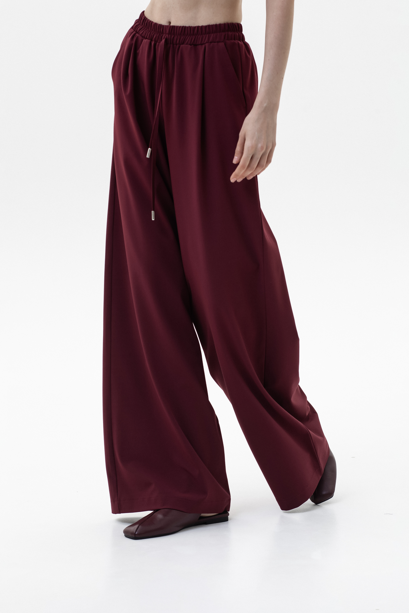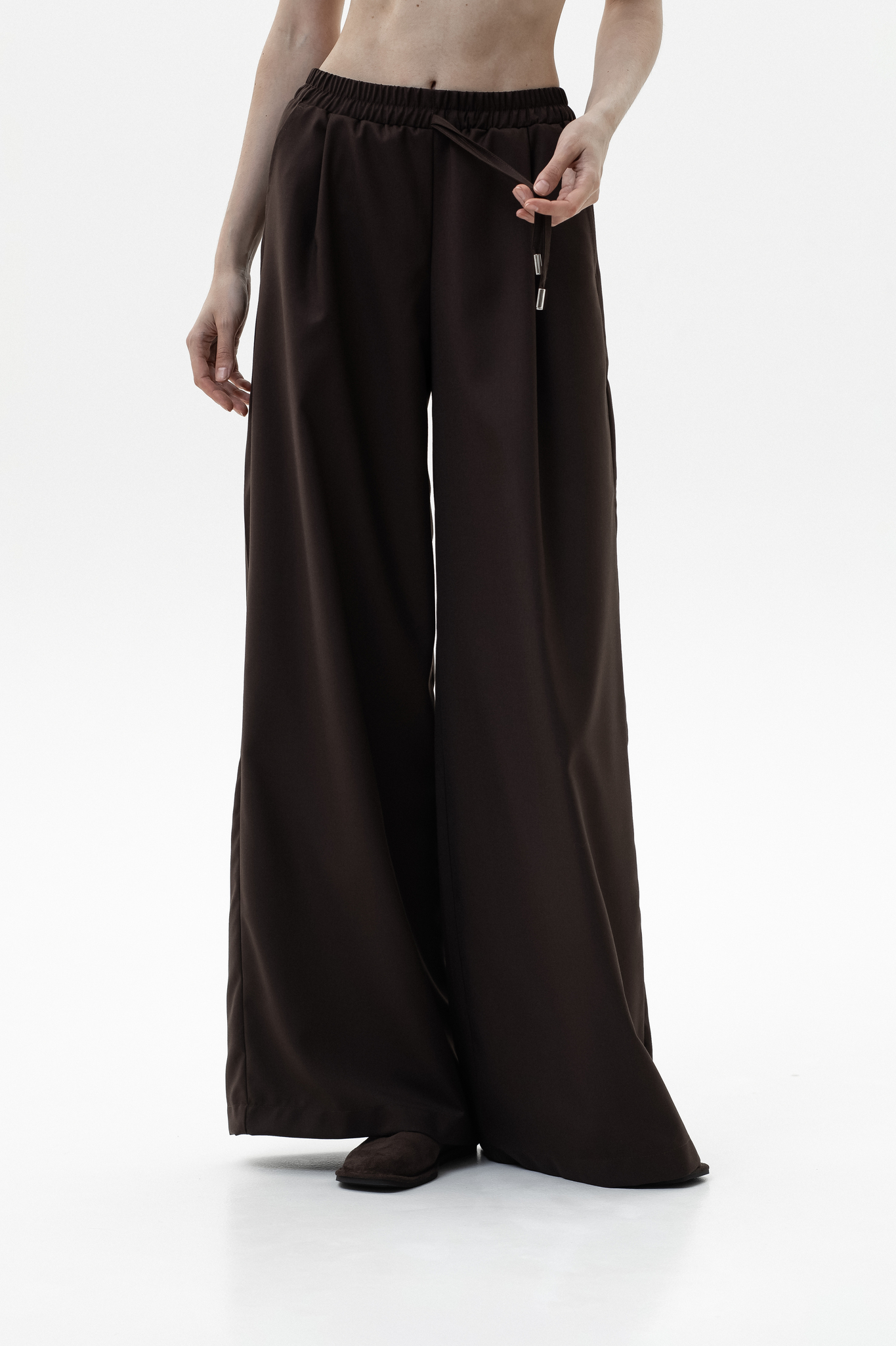Брюки-палаццо выполнены из поливискозы, которая сохраняет форму и безупречный внешний вид даже после многочисленных стирок. Лёгкая, воздухопроницаемая ткань не перегревается и не прилипает к телу, обеспечивая комфорт на протяжении всего дня. Широкий крой дарит ощущение свободы, пояс на резинке со шнурком гарантирует удобную посадку, а врезные карманы подчеркивают функциональность. Идеальный баланс стиля и практичности.