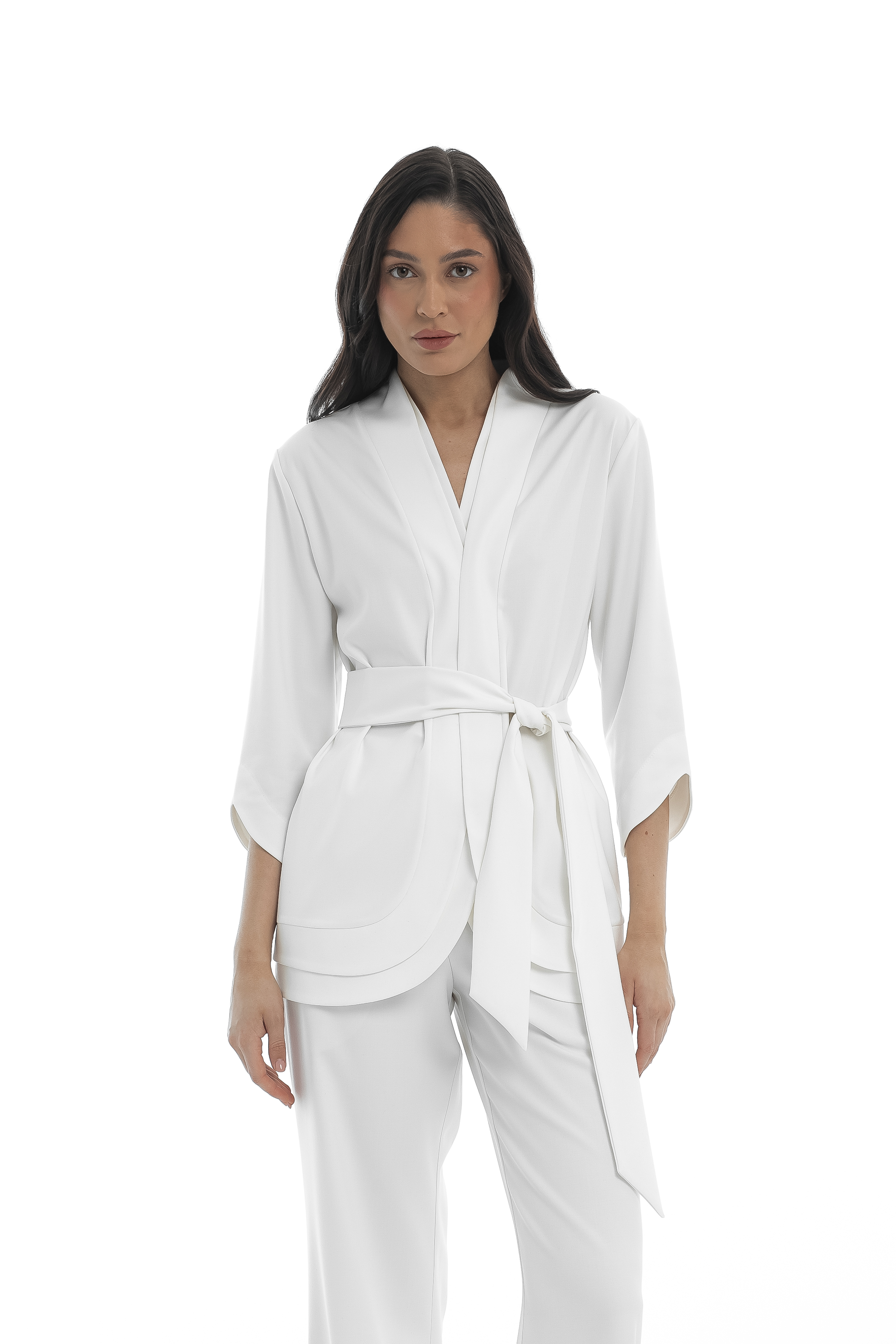 Кимоно с рукавом 3/4 – это стильный и универсальный элемент вашего гардероба, который добавит изысканности и легкости в любой образ. Его лаконичный дизайн и рукава 3/4 делают его идеальным выбором для любого времени года. Размерный ряд от 40 до 54 позволяет выбрать идеальную посадку для разных типов фигур.