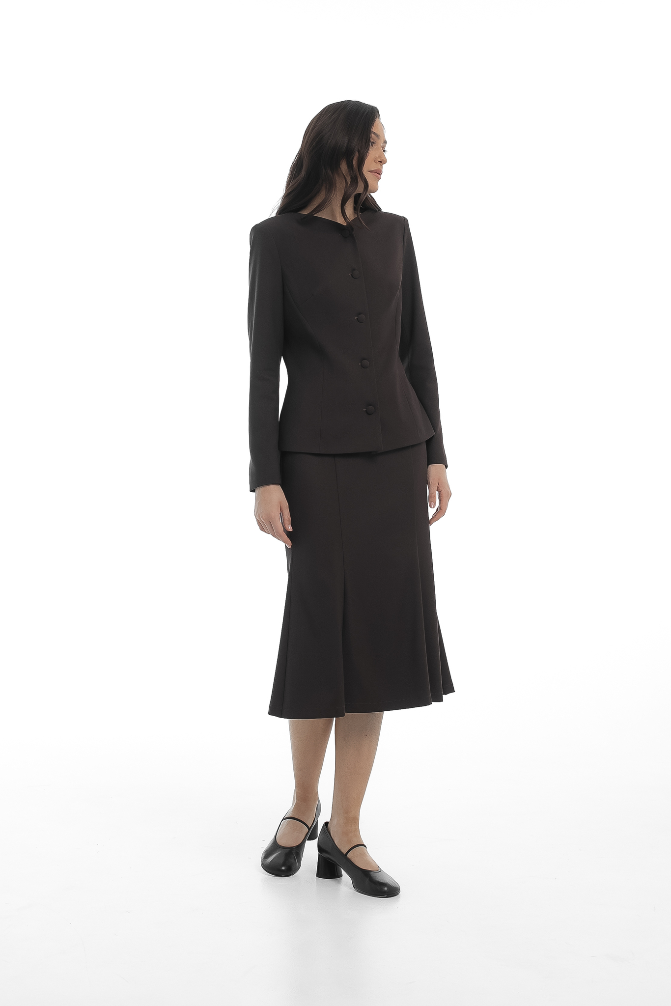Костюм «Завтрак у Тиффани» – это идеальное сочетание стиля и элегантности, которое подчеркнет вашу индивидуальность и сделает каждый ваш выход незабываемым. Включая юбку годе и жакет из уплотненной вискозы, этот комплект станет вашим любимым выбором для любого случая.