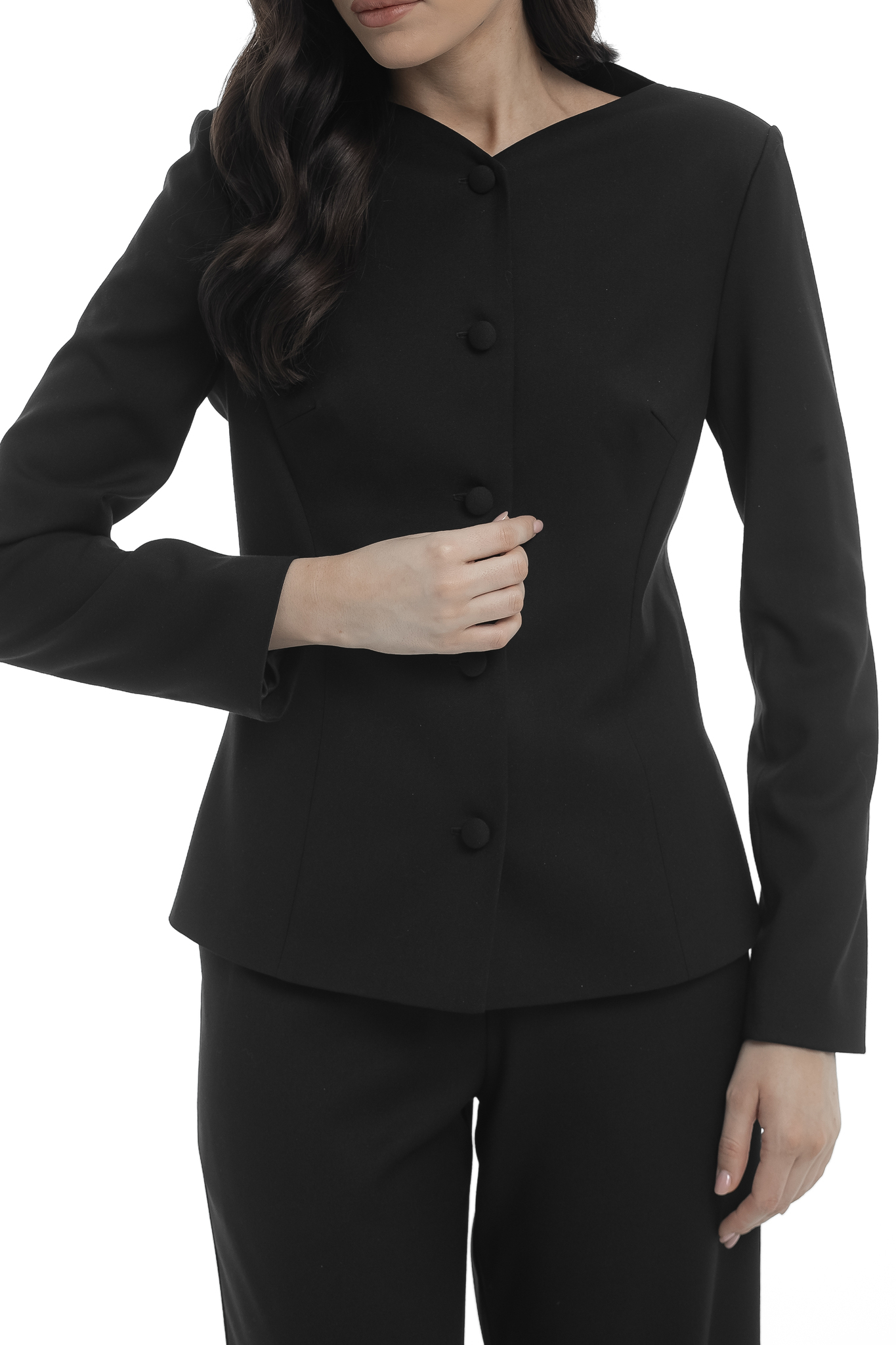 Жакет Тиффани также изготовлен из уплотненной вискозы, что гарантирует стильный внешний вид и комфорт в носке. Его лаконичный крой и аккуратные линии подчеркивают вашу профессиональность и утонченность. Жакет представлен в тех же классических цветах, что делает его идеальным дополнением к юбке.