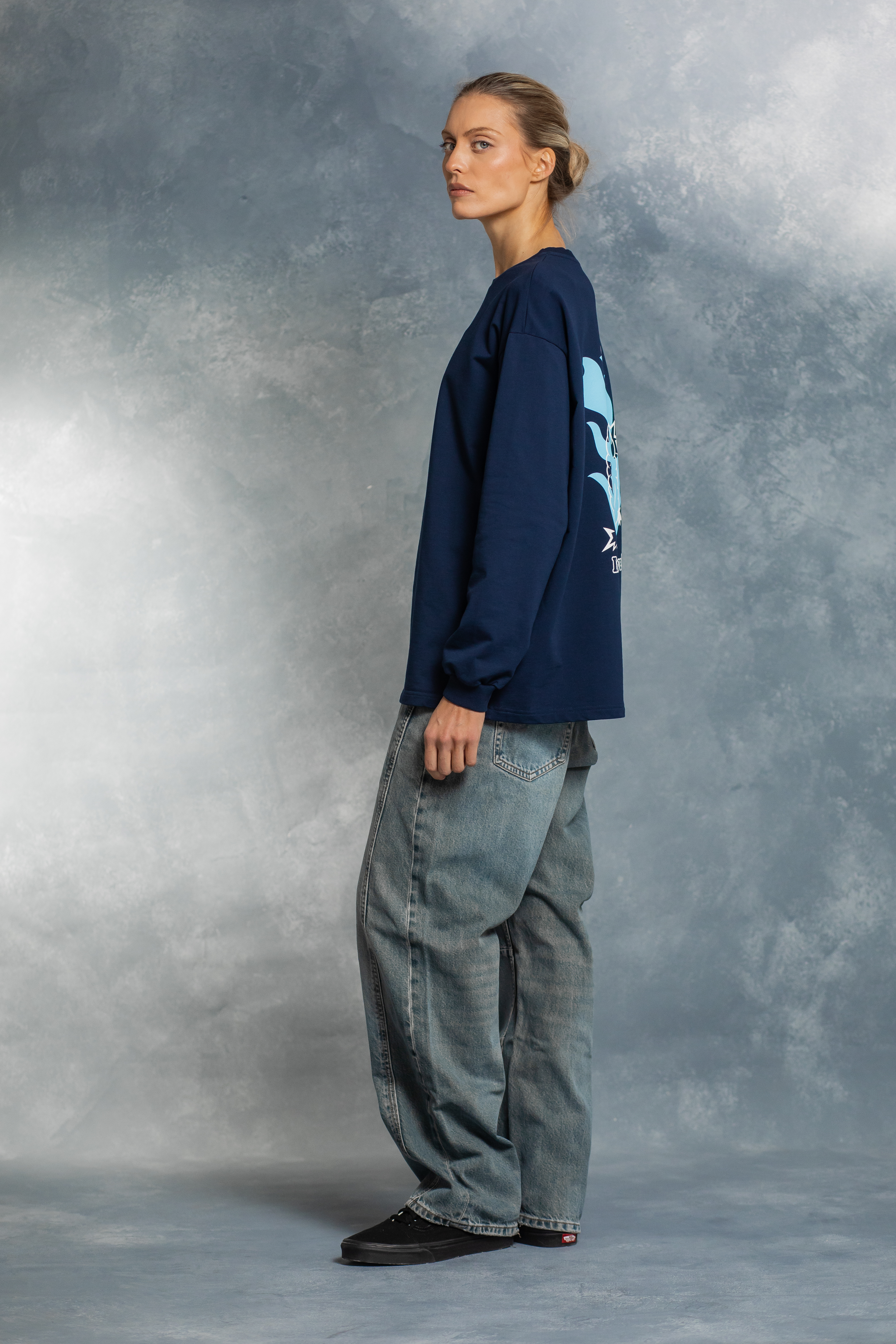 Новый фасон в коллекции — лонгслив из плотного премиального хлопка. Манжеты на рукавах добавляют практичности и сохраняют форму, а удлиненный силуэт придает современный стиль. Оверсайз-крой, широкая горловина и продуманная длина обеспечивают комфорт в течение всего дня.