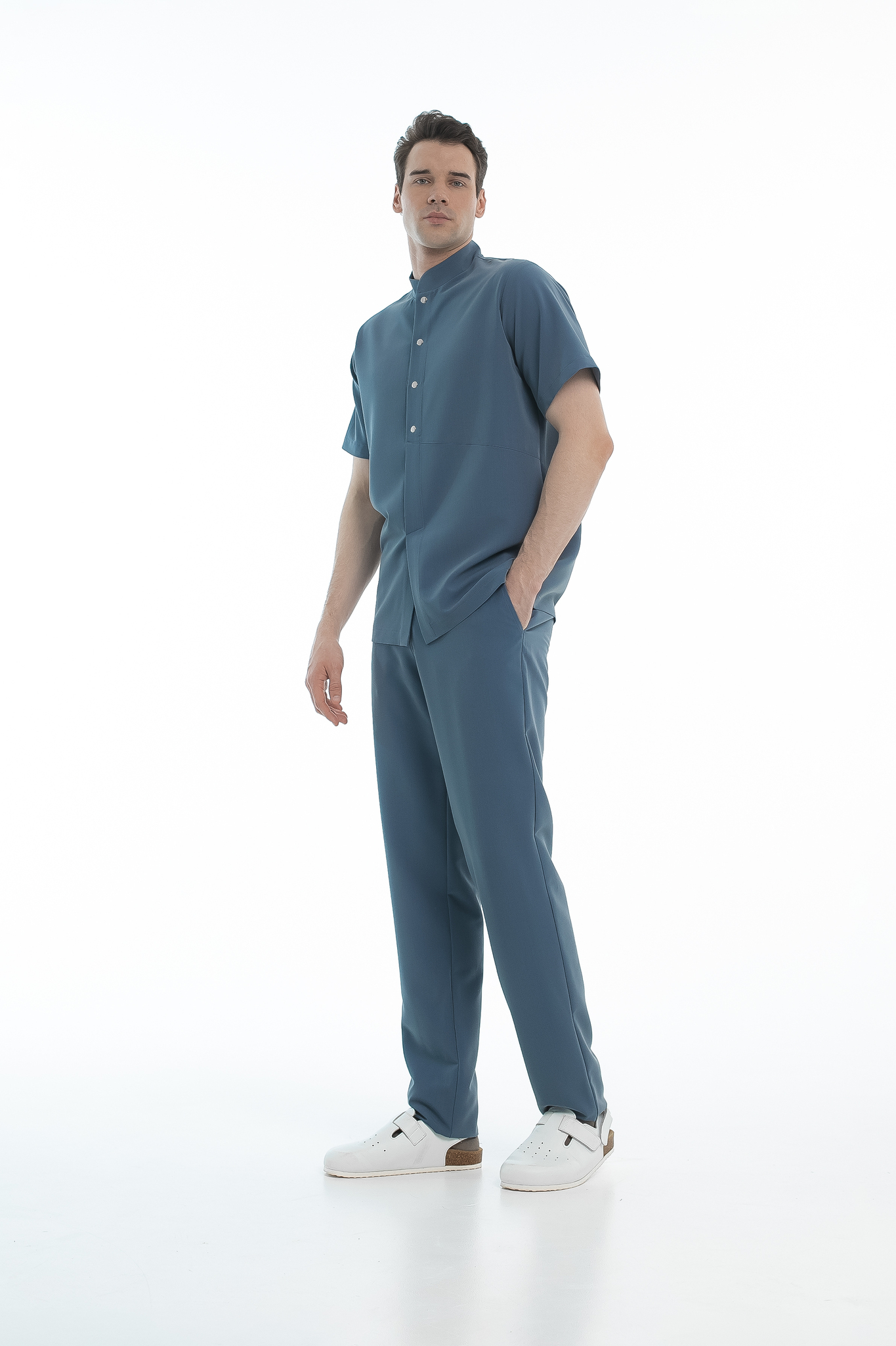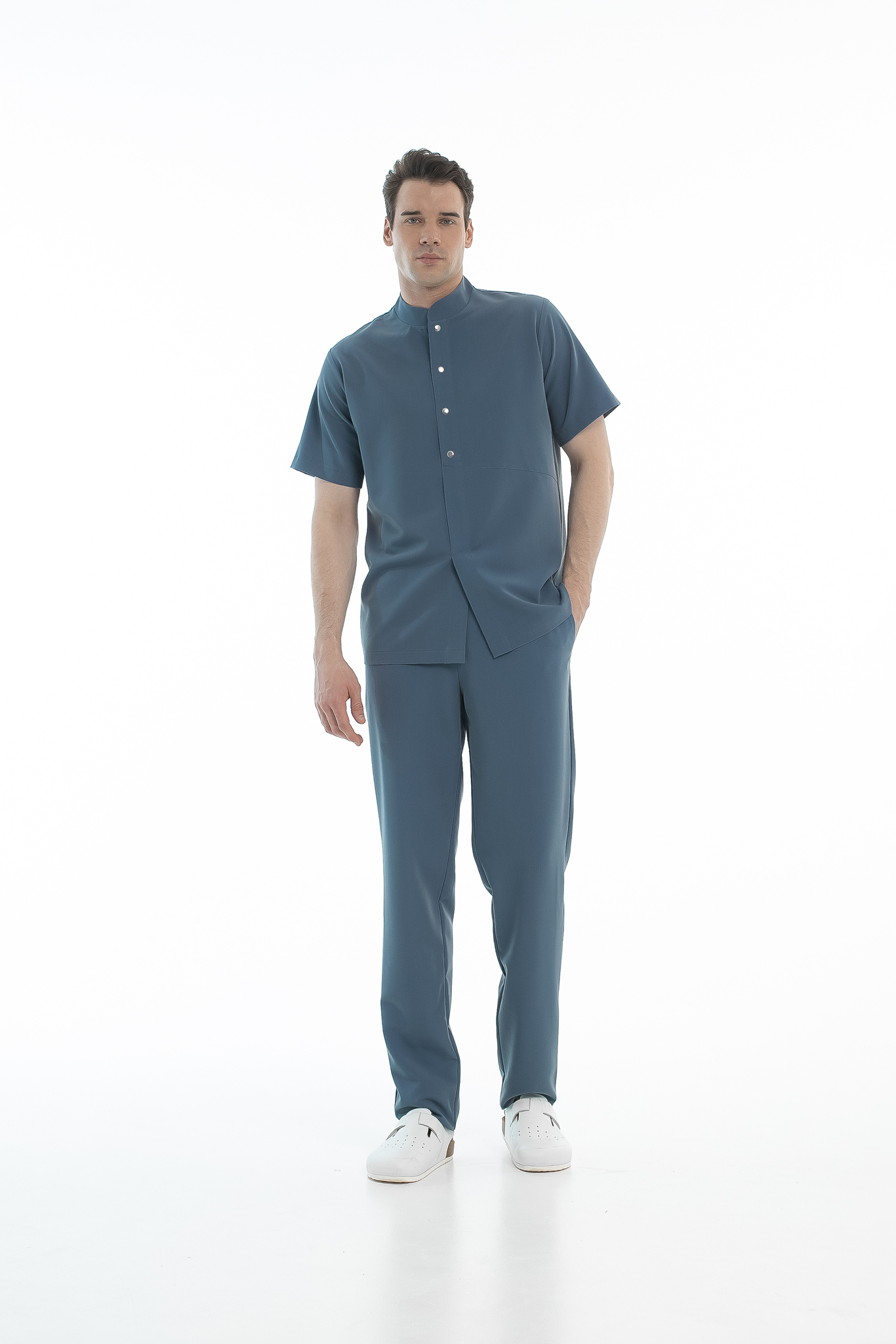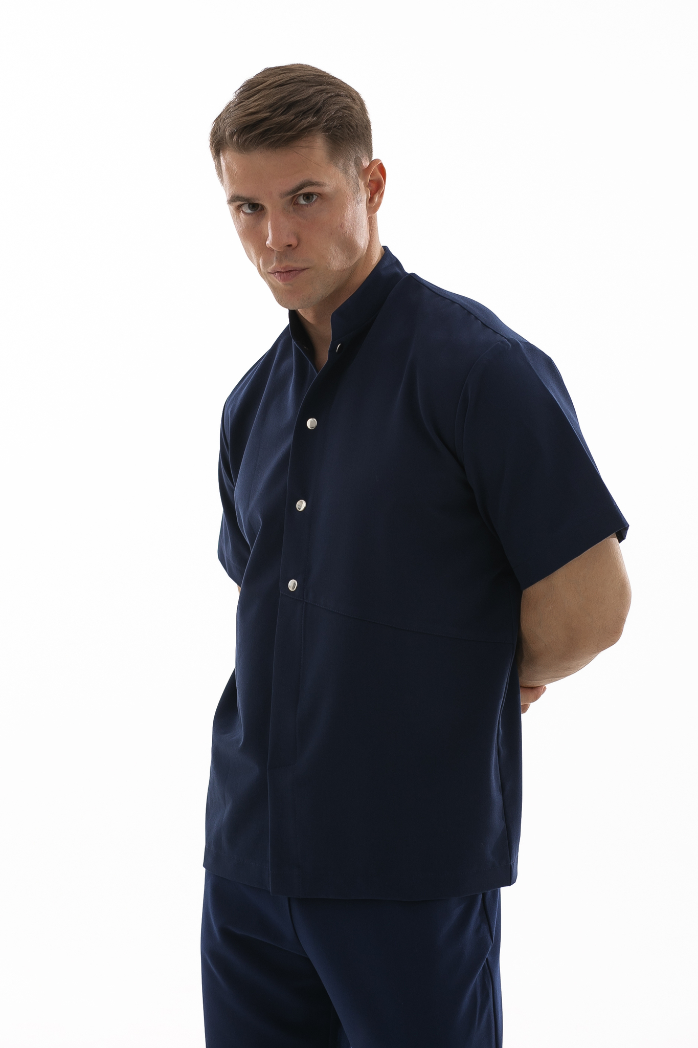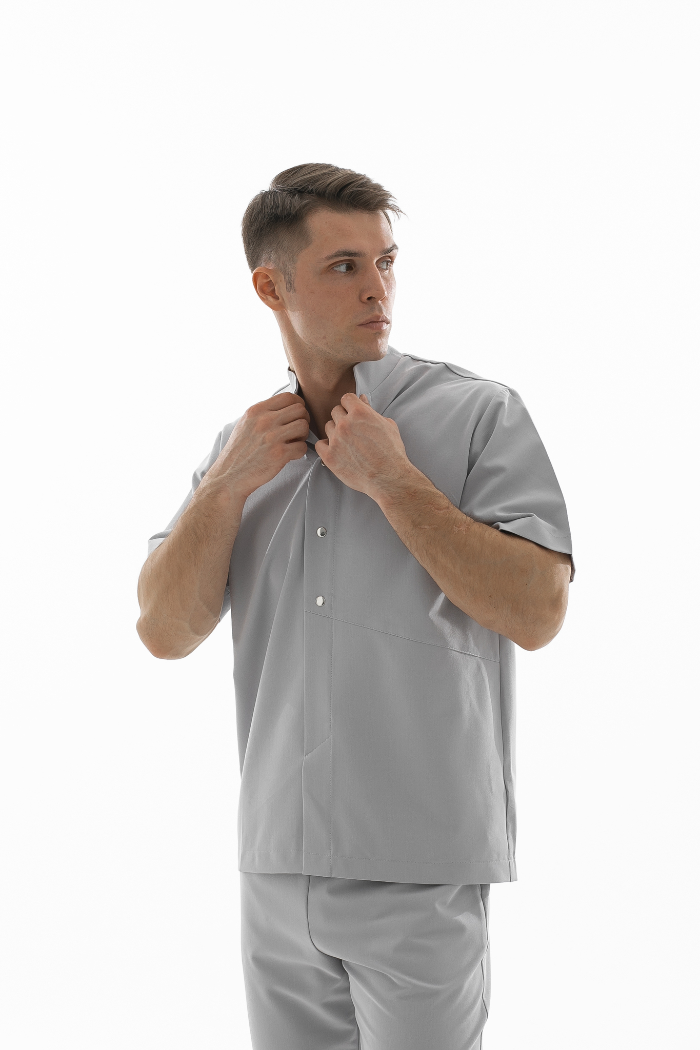 Удобный и минималистичный крой обеспечит комфорт при работе. Прилегание горловины можно легко отрегулировать кнопками.