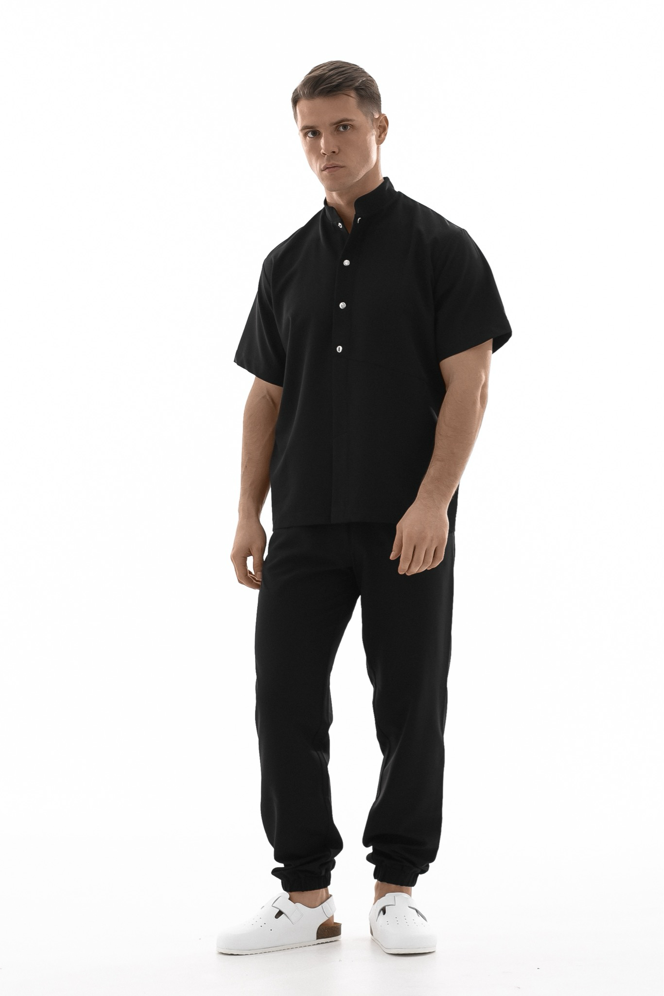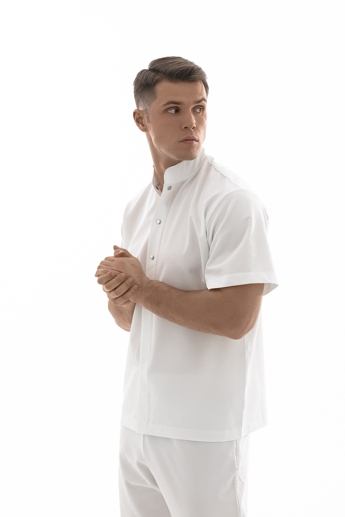 Удобный и минималистичный крой обеспечит комфорт при работе. Прилегание горловины можно легко отрегулировать кнопками.